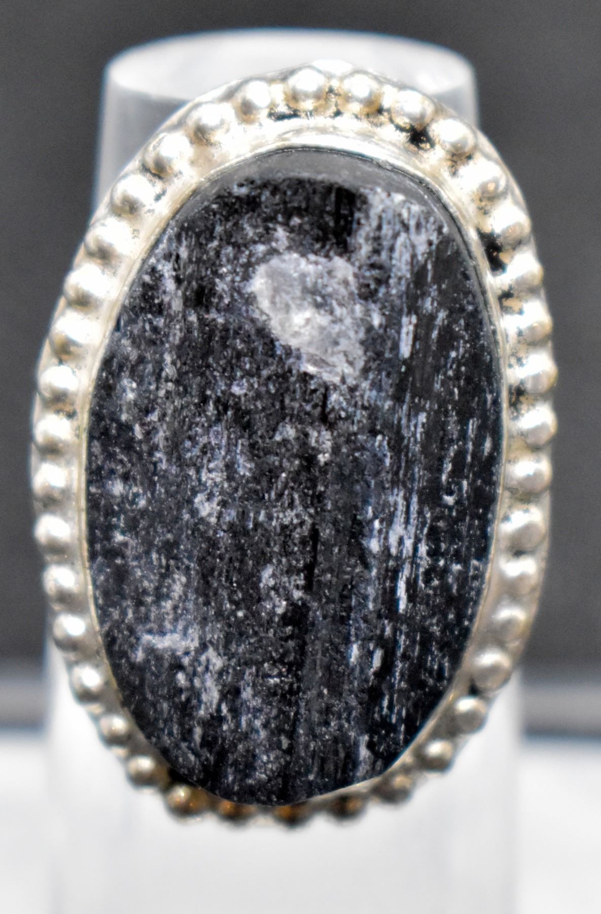 #56-NATURAL BLACK TOURMALINE (RAW) RING SIZE 6.25
