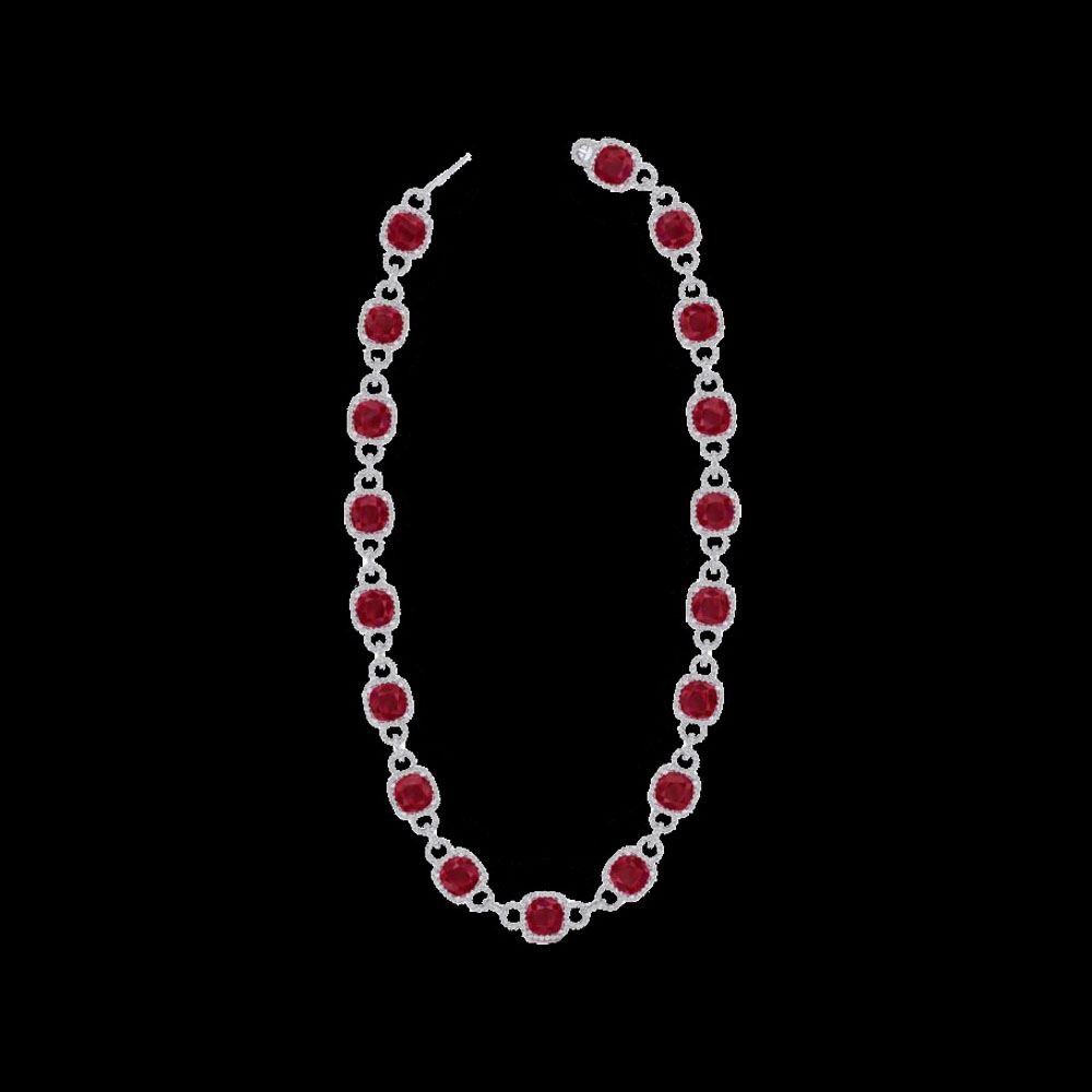 56 ctw Ruby & Micro VS/SI Diamond Eternity Necklace 14K White Gold