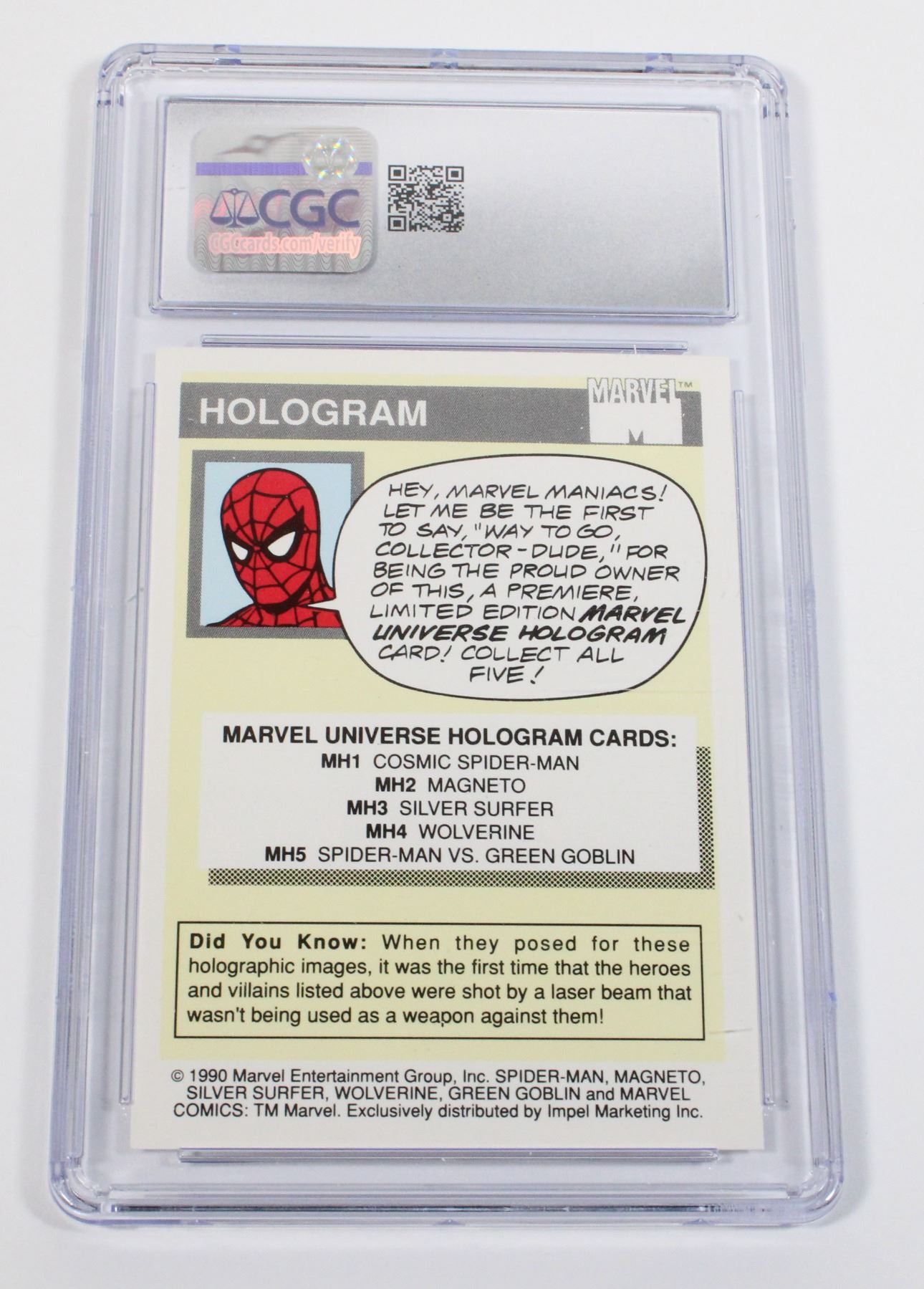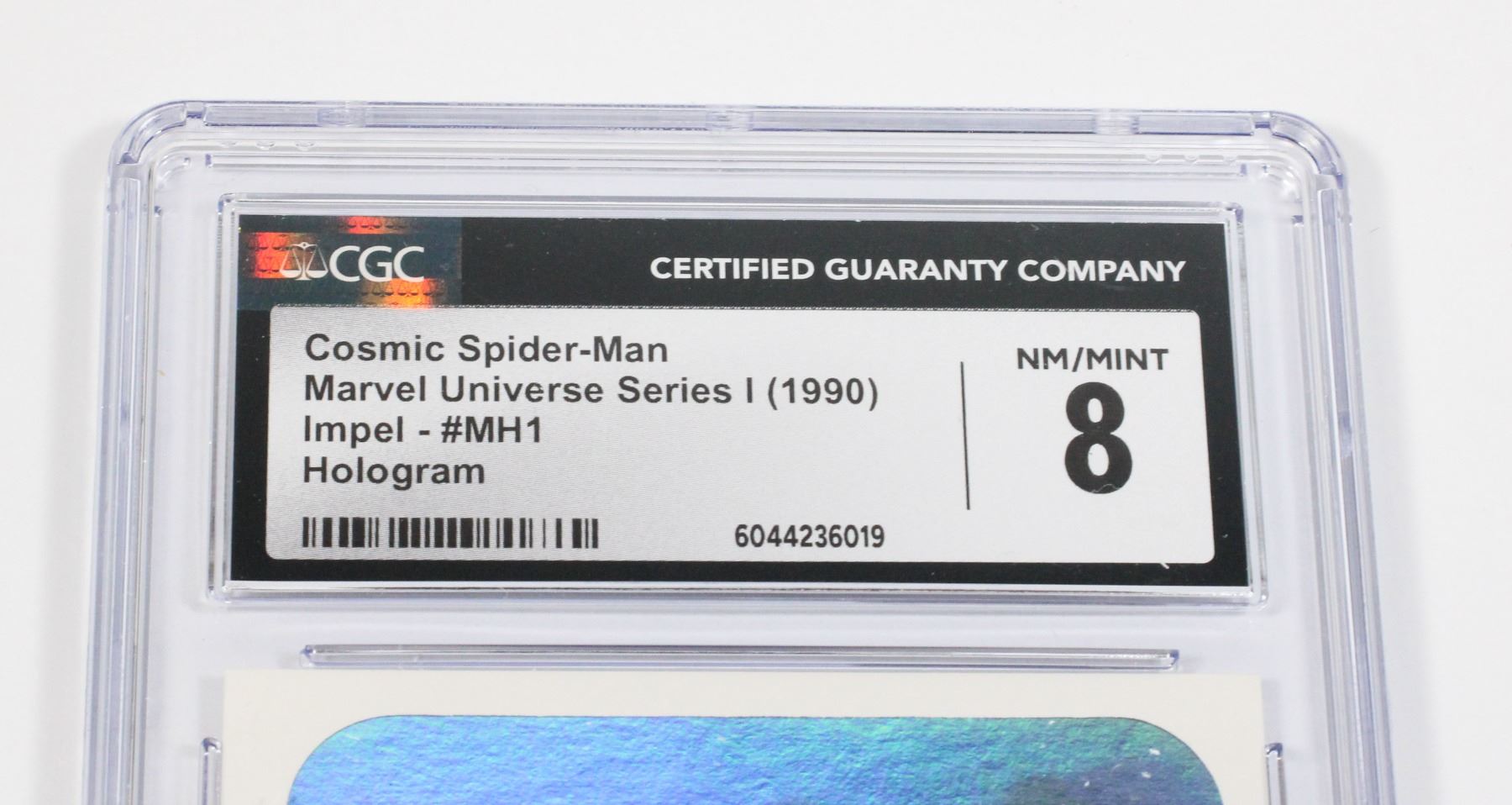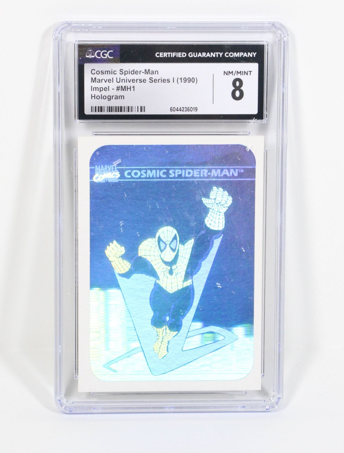 NM/MINT 8 COSMIC SPIDER-MAN MARVEL UNIVERSE SERIES 1 1990 IMPEL #MH1 HOLOGRAM CGC GRADED CARD
