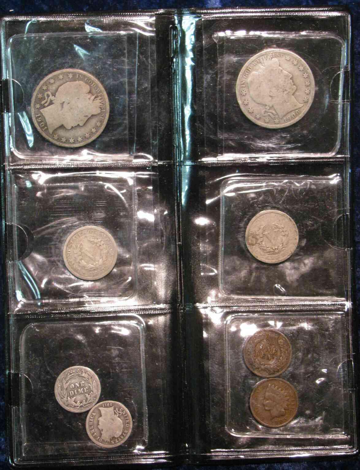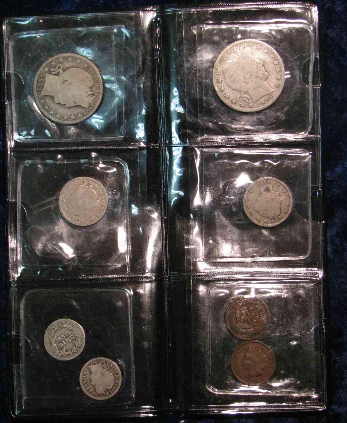 560. Old Collection in a Coin Wallet. Includes (2) 1905 Indian Cents; 1903 & 09 Liberty Nickels; 1911P & 16P Barber Dimes; 1901P & 06 O Barber Half Dollars. All circulated.