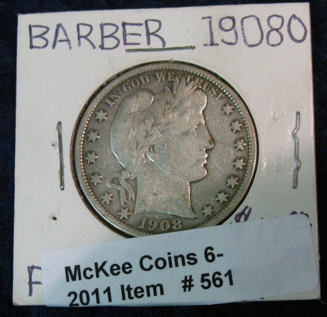 561. 1908 O Barber Half Dollar. F-12.