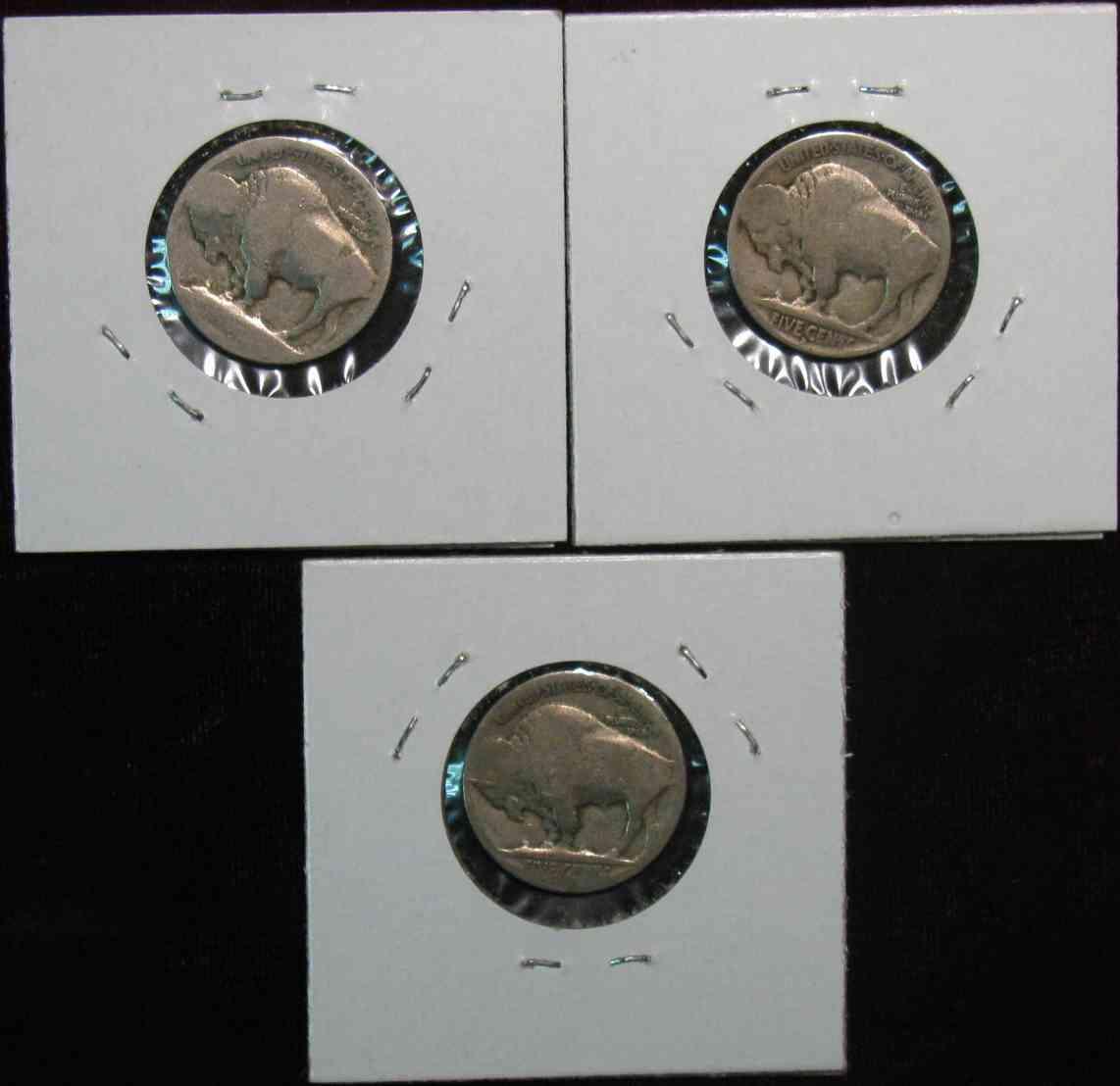 563. 1913D T.1, 14S, & 15D Buffalo Nickels. Restored dates. G-4 Redbook is $52.00.