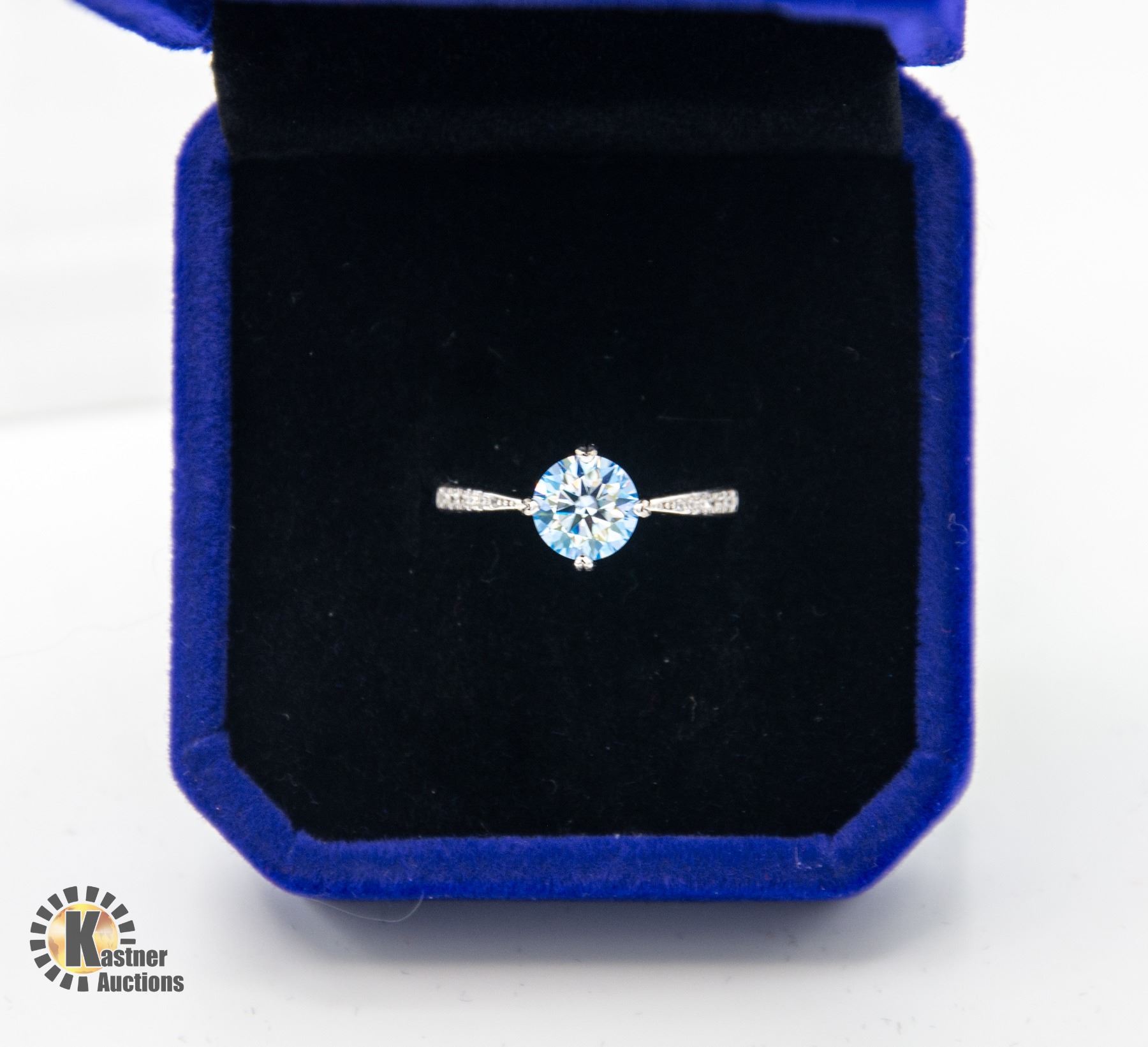 BRILLIANT CUT MOISSANITE STONE VVS BLUE COLOR SET IN CENTER IN 925 SILVER RING SIZE ADJUSTABLE **ALL ITEMS MUST BE REMOVED BY 5PM SATURDAY, SEPTEMBER 7th 2024. ALL REMAINING ITEMS WILL BE SUBJECT TO A $6.00 PER DAY STORAGE CHARGE. ANY ITEMS REMAINING AFTER MONDAY, SEPTEMBER 23RD 2024 WILL BE CONSIDERED FORFEITED. NO REFUNDS WILL BE ISSUED FOR FORFEITED ITEMS. TO SCHEDULE A PICK UP APPOINTMENT CLICK HERE