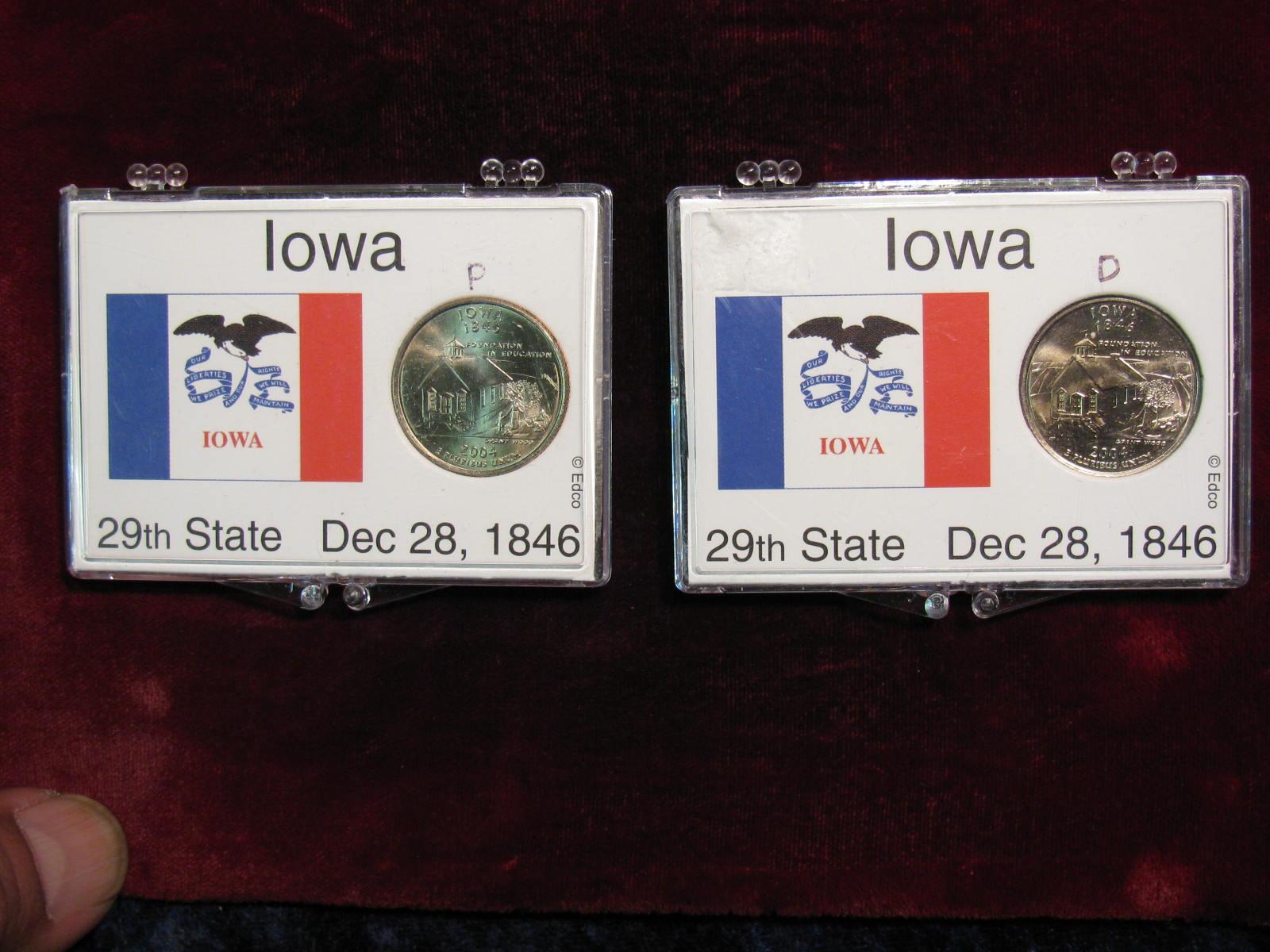 564. 2004 P & D Iowa Statehood Quarters In Display Cases. BU