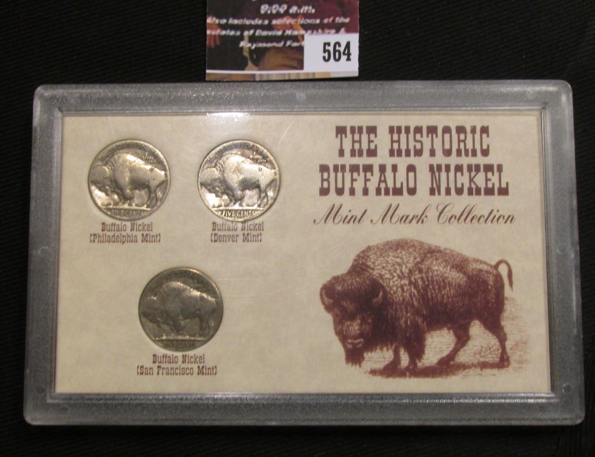 564.Three-Piece Set "The Historic Buffalo Nickel Mint Mark Collection" in a hard plastic case.