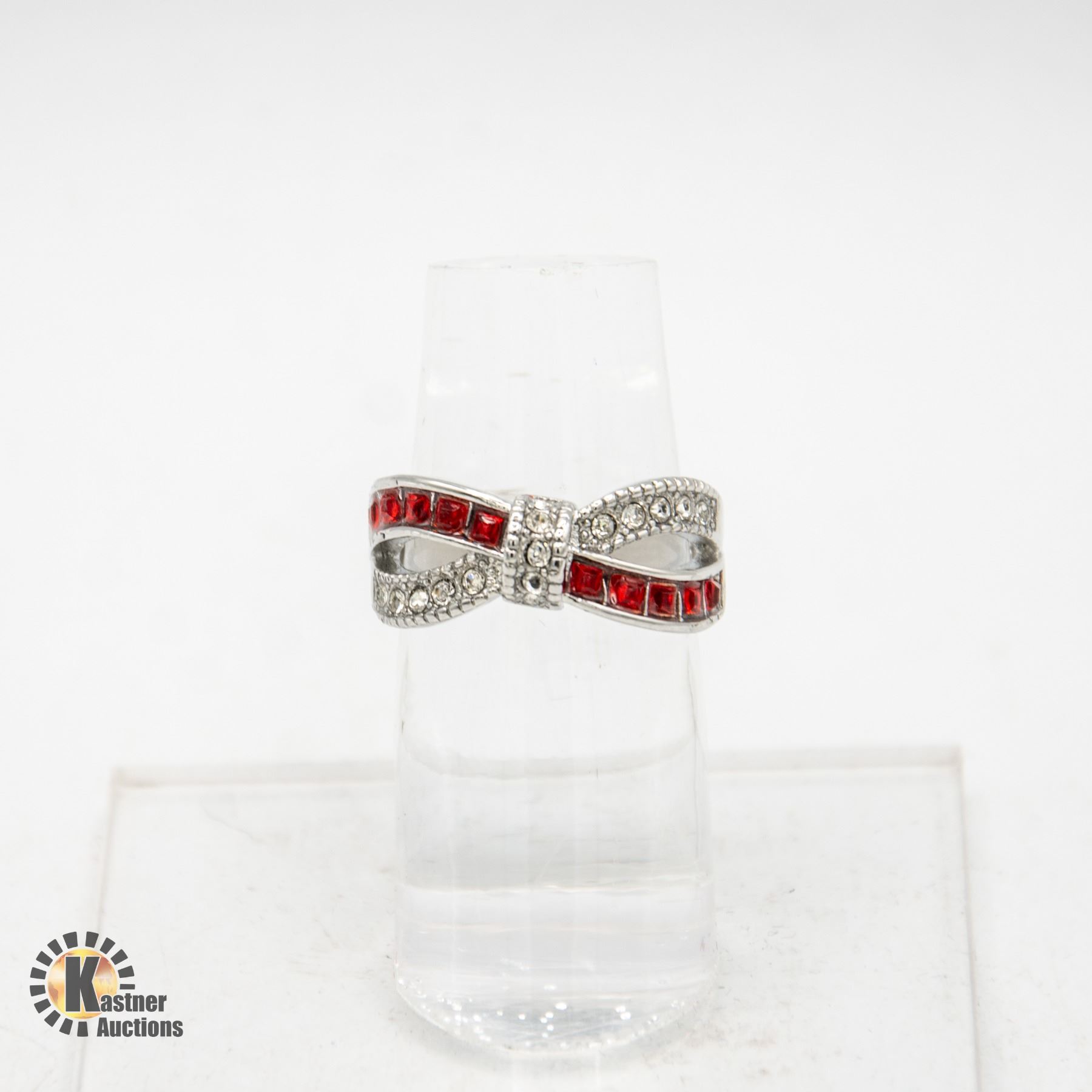 5 CLEAR STONES ON OPPOSING SIDES WITH 5 CLEAR STONES ON BRIDGE DOWN CENTER RING SIZE 8