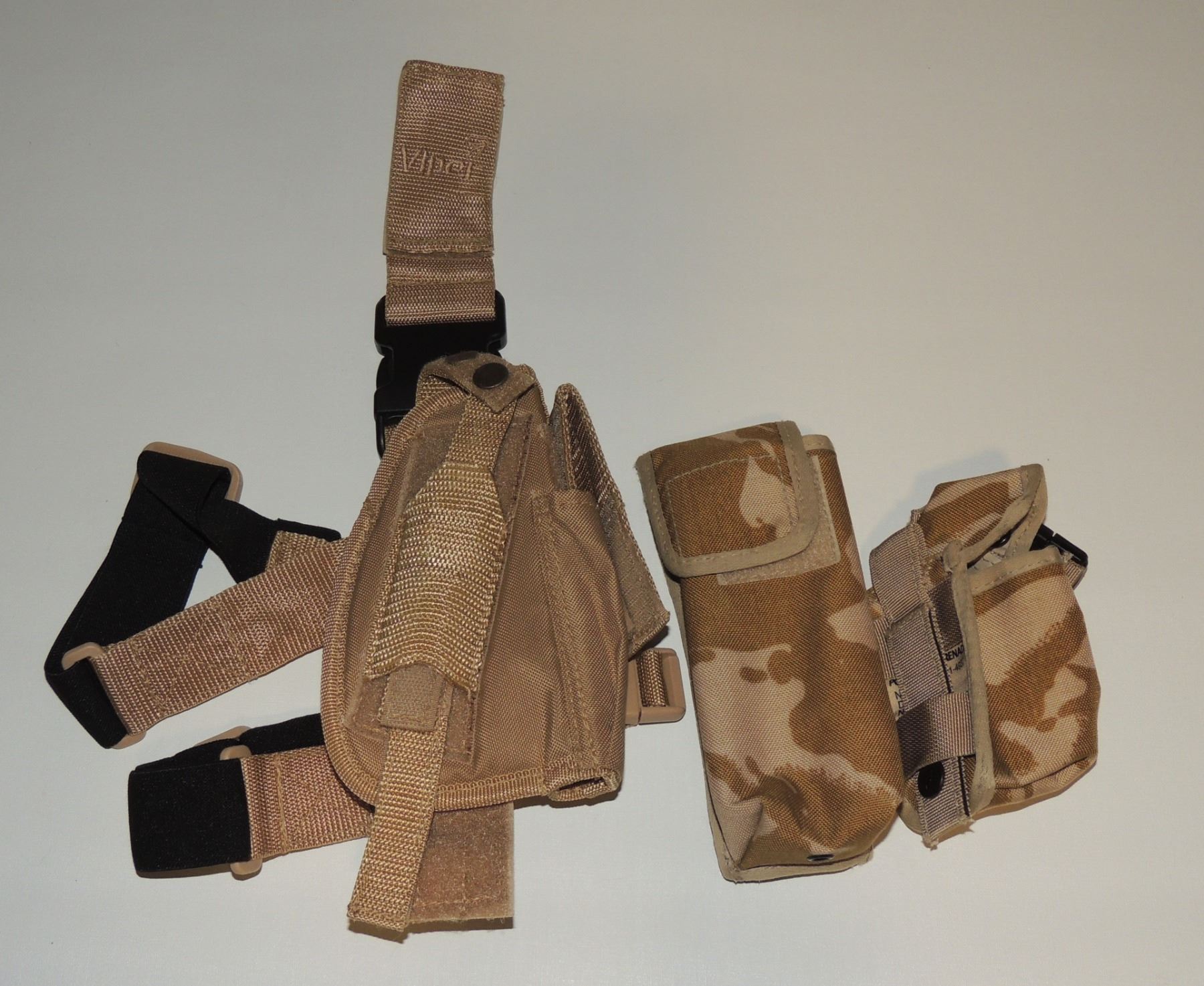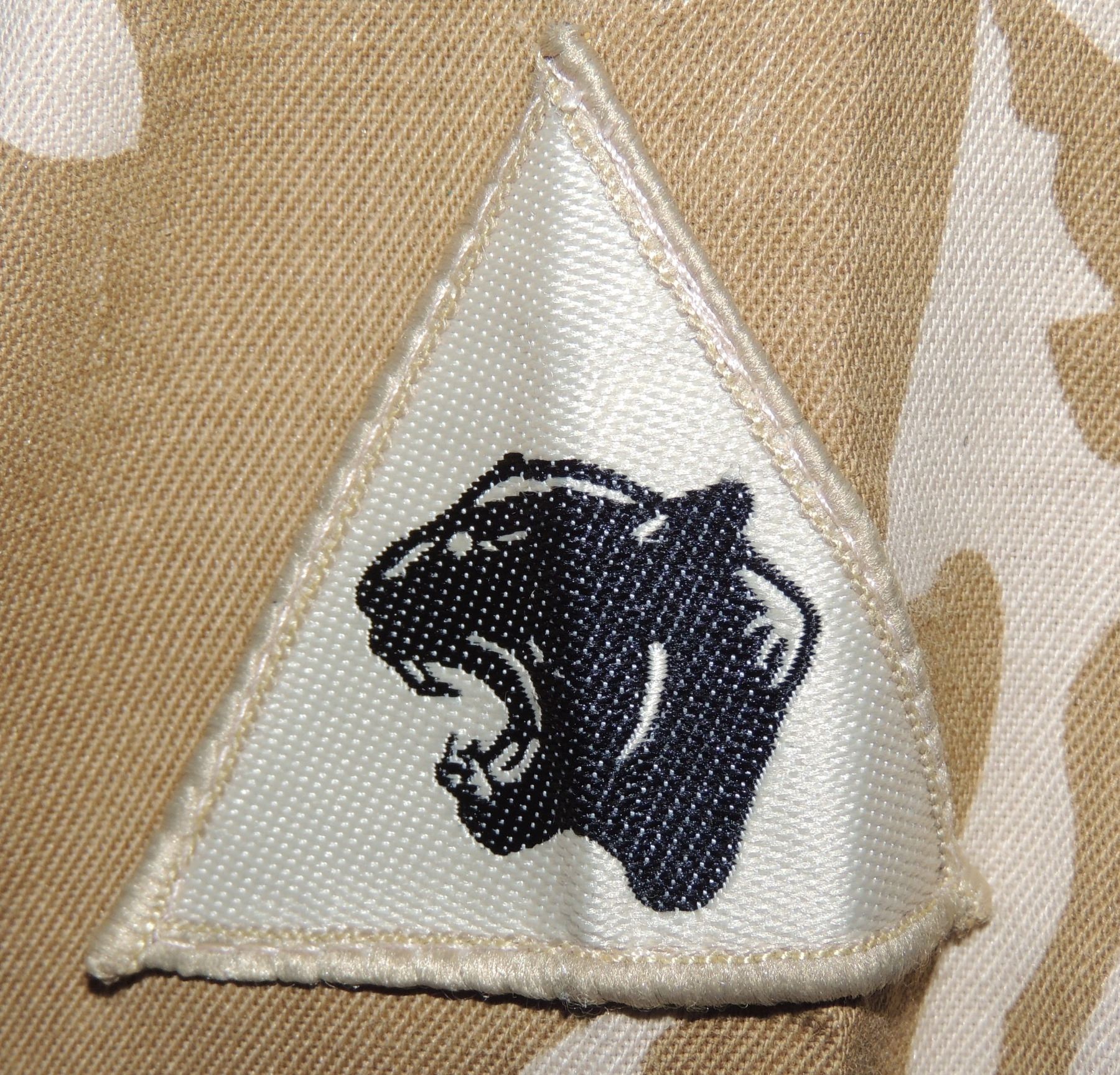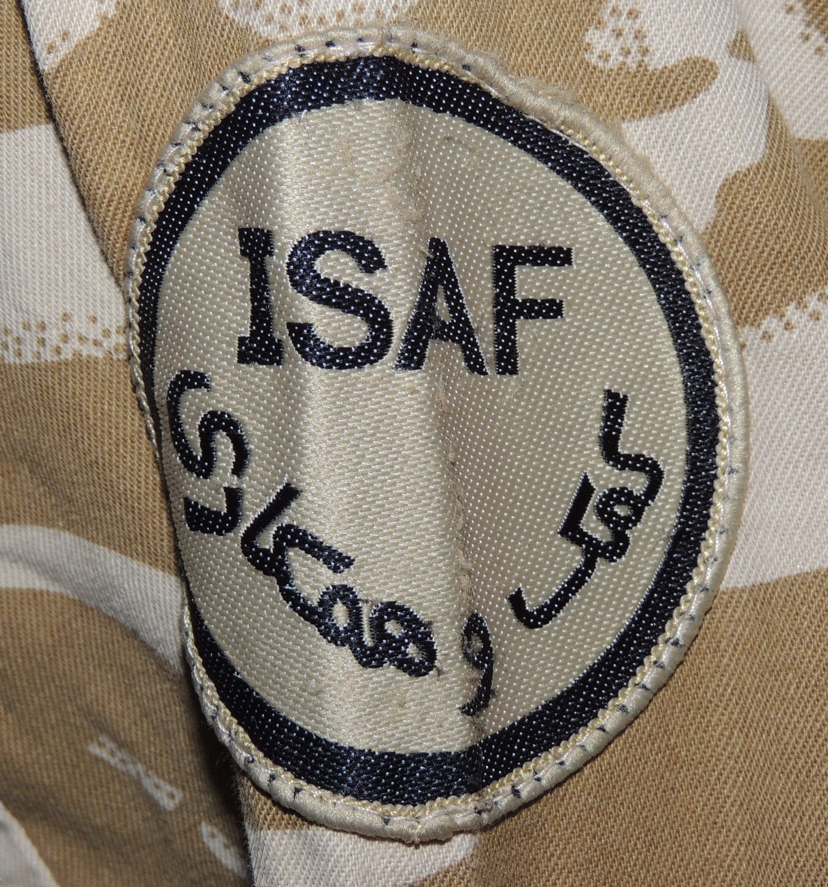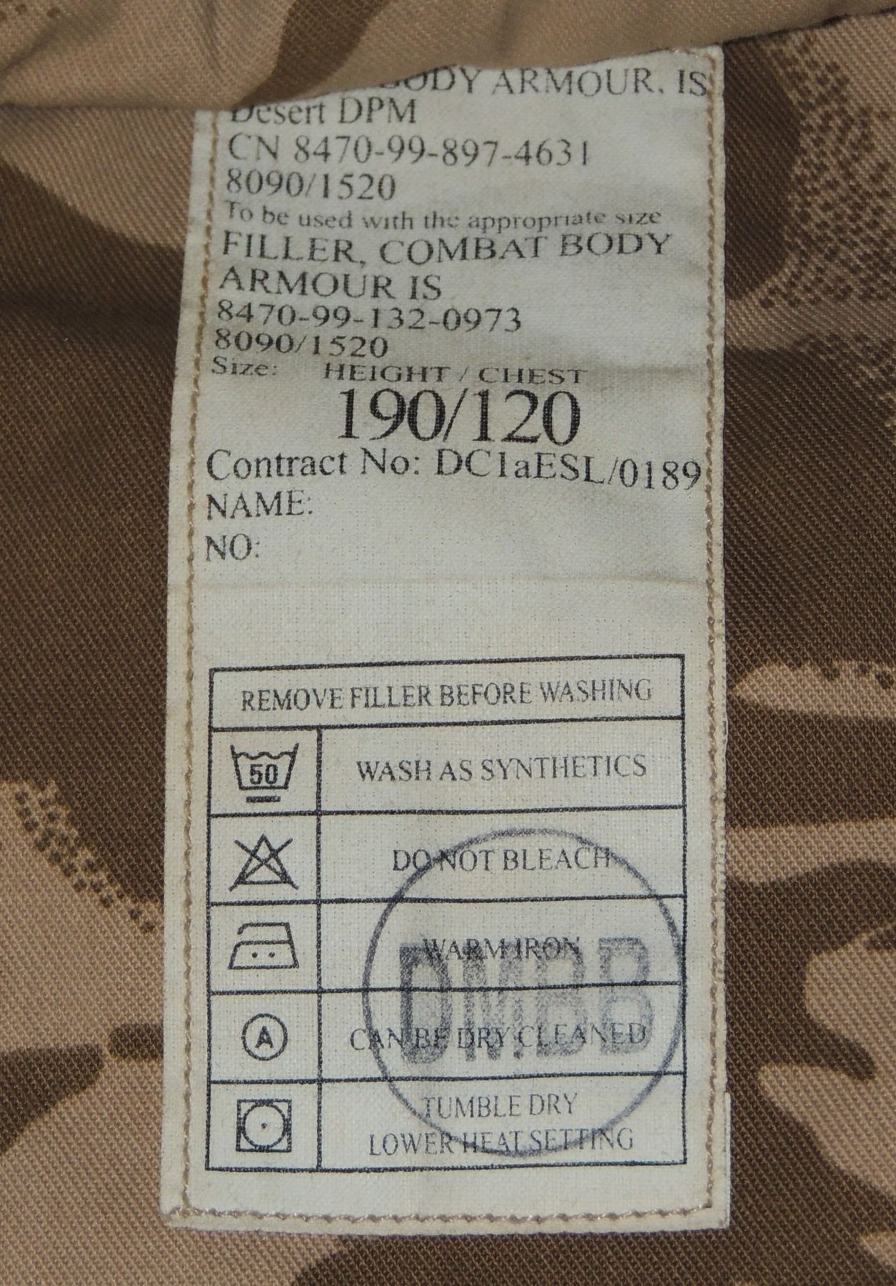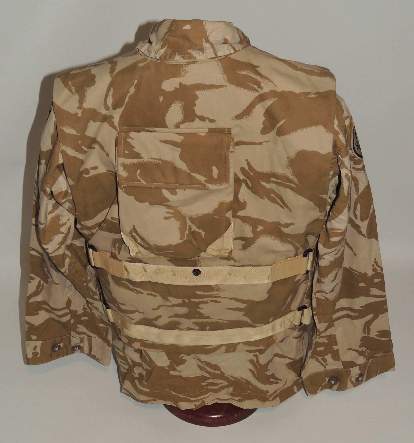 NAMED "JONES" AND NUMBERED "JO7007B+" INCLUDES BODY ARMOUR COVER DESERT DPM, COMBAT TROPICAL JACKET WITH DESERT DPM CAMOFLAUGE WITH 19TH LIGHT BRIGADE PATCH ISAF PATCH AND UNION JACK PATCH,MVP COMBAT JACKET DESERT DP CAMO SIZE 180/104 TILLY HAT DESERT CAMO, 2006 DATED COMBAT WARM WEATHER DESERT CAMO GLOVES, TWO BROWN COMBAT T-SHIRT, BRITISH GREEN ARMY JUMPER SWEATER AND COLD WEATHER SHIRT, VIPER BELT STORAGE ATTACHMENT AND TWO ADDITIONAL CAMO BELT STORAGE POUCHES "POUCH KNIFE/TORCH" AND "40MM GRENADE", COVER POUCH SIDE RUCKSACK SMALL 2007 DESERT CAMO COVER, AND BRITISH LEATHER MILITARY COMBAT BOOTS WITH INTERIOR MARKINGS. EXCELLENT FOR DISPLAY ON AFGHANISTAN WAR, WAR ON TERROR EARLY 2000'S BRITISH MILITARY ALLIED FORCES UNIFORM GROUPING.