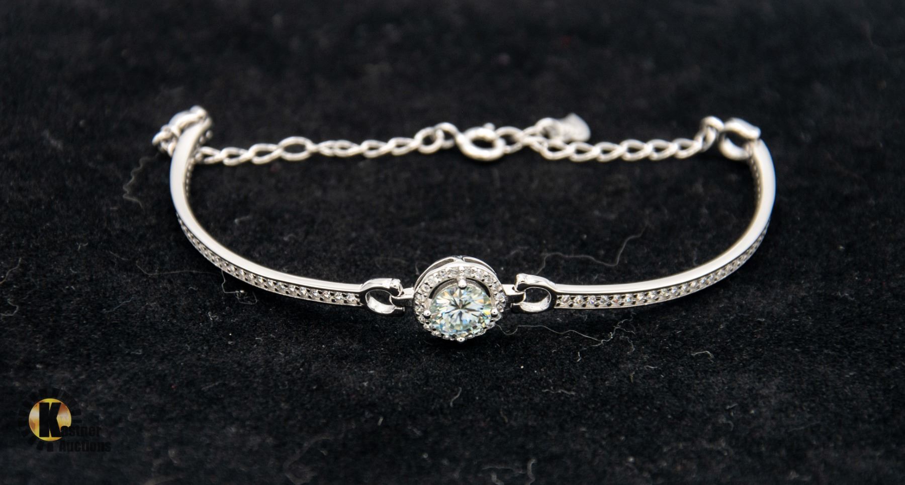MOISSANITE STONE VVS D COLOR SET IN CENTER IN 925 SILVER BRACELET **ALL ITEMS MUST BE REMOVED BY 5PM SATURDAY, SEPTEMBER 7th 2024. ALL REMAINING ITEMS WILL BE SUBJECT TO A $6.00 PER DAY STORAGE CHARGE. ANY ITEMS REMAINING AFTER MONDAY, SEPTEMBER 23RD 2024 WILL BE CONSIDERED FORFEITED. NO REFUNDS WILL BE ISSUED FOR FORFEITED ITEMS. TO SCHEDULE A PICK UP APPOINTMENT CLICK HERE