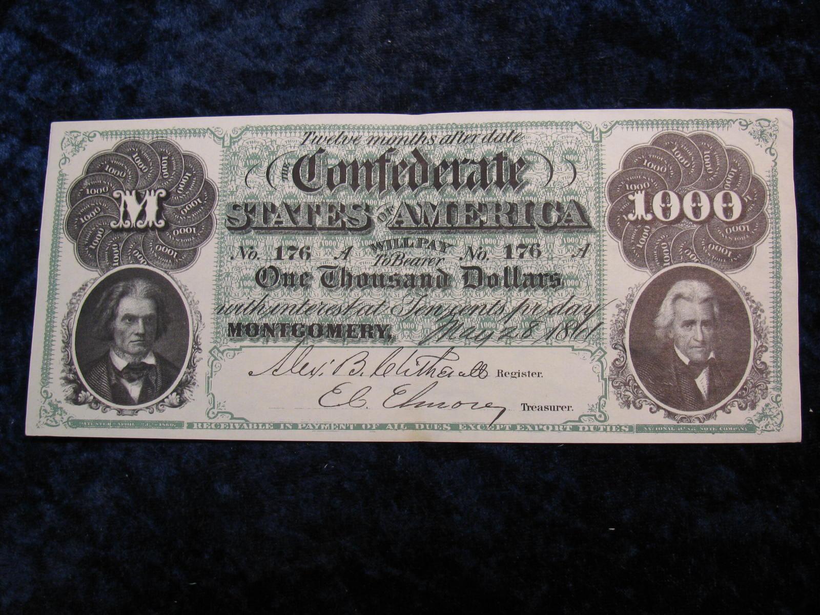 566. $1000 Confederates States Of America Uniface Advertising Note. UNC
