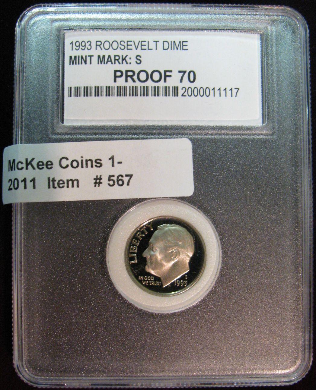 567. 1993 S Roosevelt Dime PCC slabbed Proof 70.