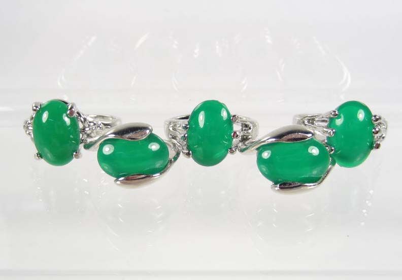 568 - LOT OF 5 TIBETAN SILVER JADE COLORED STONE RINGS