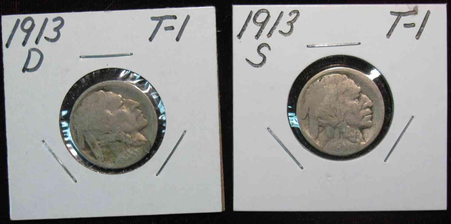 569. 1913 D & S T.1 Buffalo Nickels. Restored dates. G-4 Redbook is $50.00