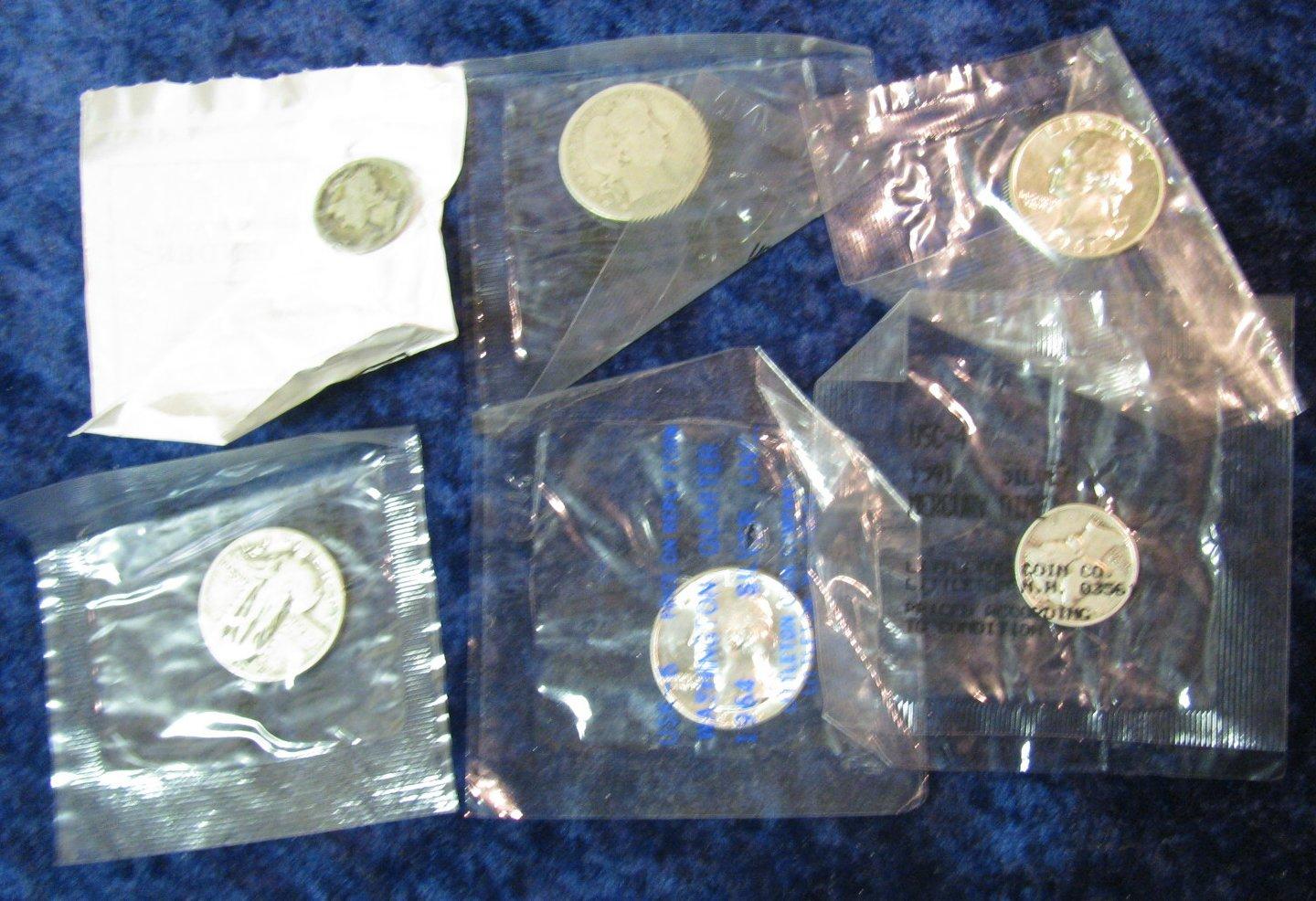 569. (2) Mercury Dimes & (4) Silver Quarters in Littleton Coin Co. packages.