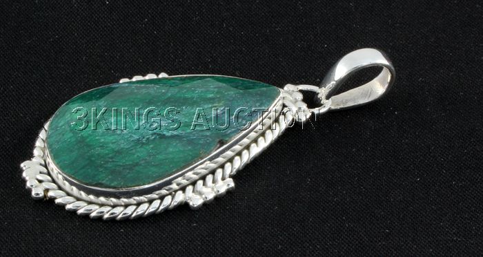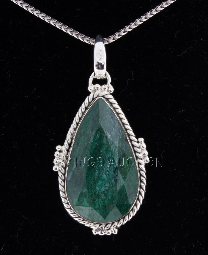 57.00ctw NaturalEmeraldBerylPearStone SilverPendant **|**|** Fine Sterling Silver Pear Pendant set with Natural Emerald Gemstone size: 40.66x23.10mm; color: Green; Stone Family: Beryl ; MSRP: $600