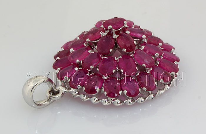 57.31CTW Pretty Cluster of Pink Ruby Silver Pendant **|**|** A 1.3in. Round Cluster Design of Pink Ruby Gemstone Silver Pendant; Size: 6x4mm; ctw: 23.40; stone count: 39; gram weight: 6.78 ; MSRP: $2500