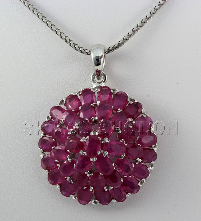57.31CTW Pretty Cluster of Pink Ruby Silver Pendant **|**|** A 1.3in. Round Cluster Design of Pink Ruby Gemstone Silver Pendant; Size: 6x4mm; ctw: 23.40; stone count: 39; gram weight: 6.78 ; MSRP: $2500