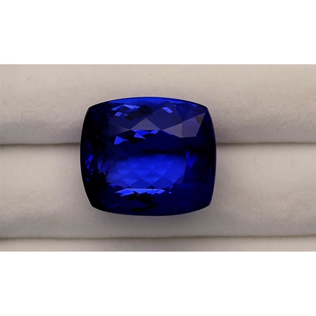 One loose cushion cut tanzanite stone, measuring approximately 23mm x 20mm x 14mm and weighing 57.45ct.