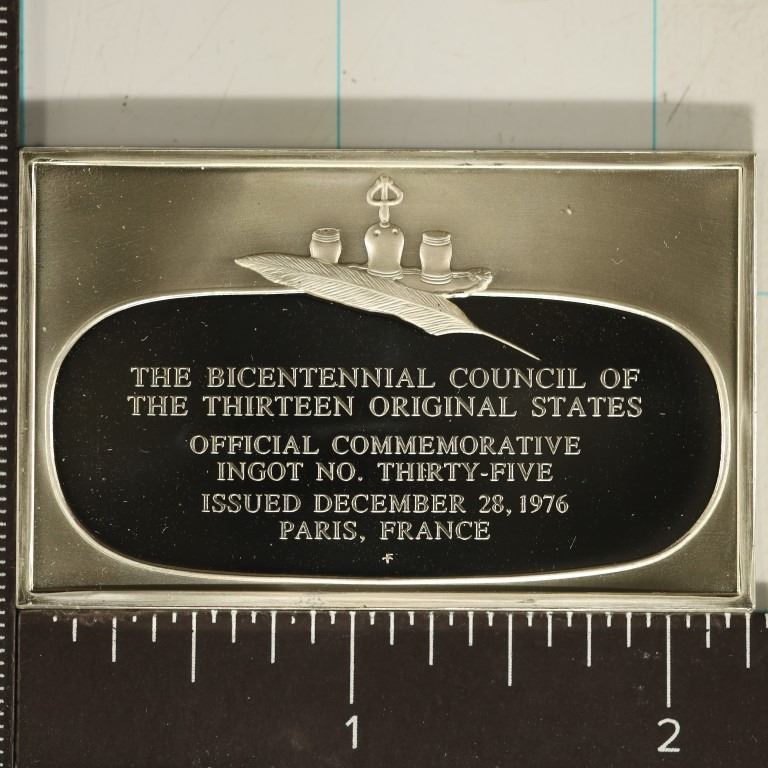 COUNCIL OF THE 13 ORIGINAL STATES COMMEMORATIVE INGOT #35 ISSUED DEC. 28TH, 1976, PF, EDGE MARKED
