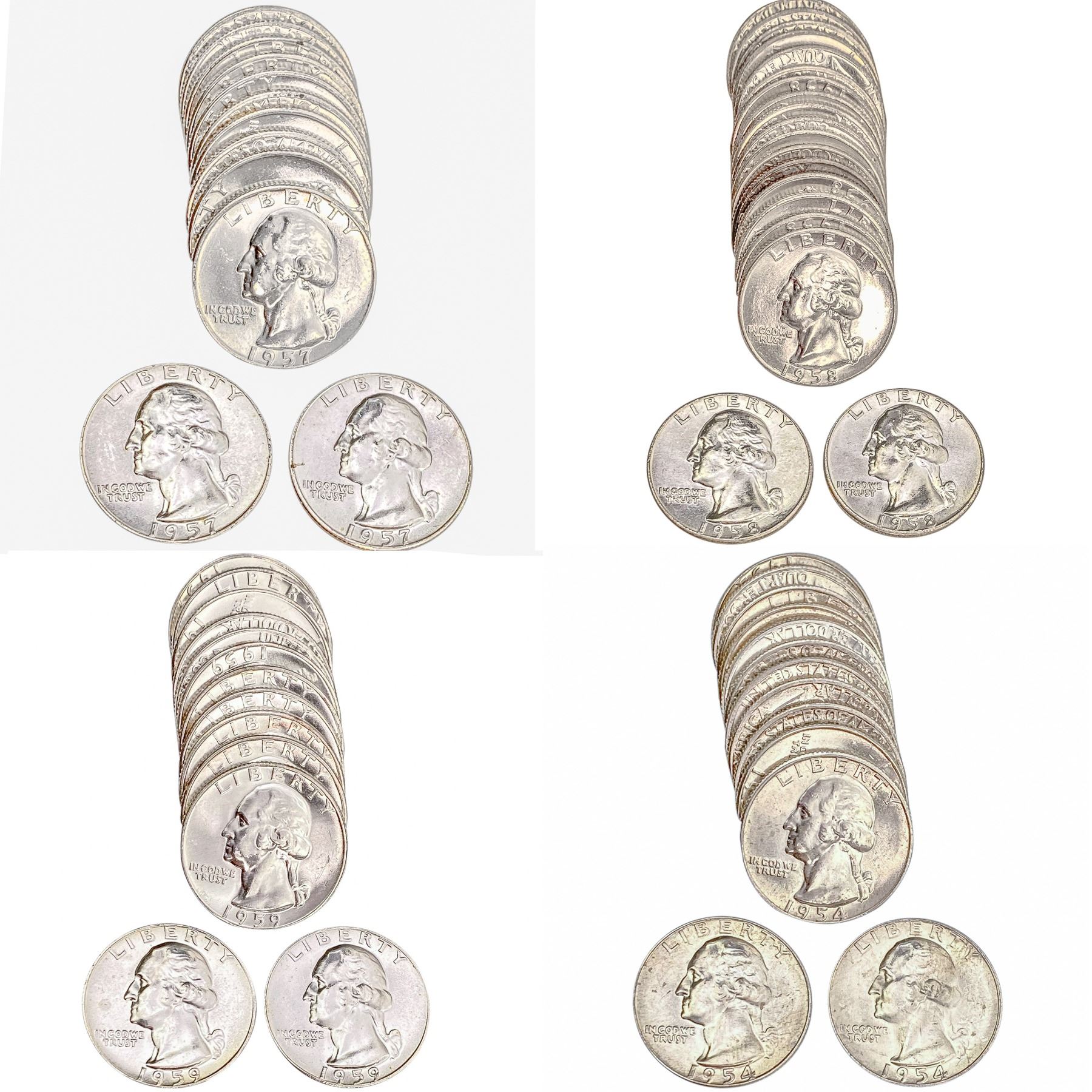 [57 Coin] 1954-1959 [4 Rolls] of Quarters