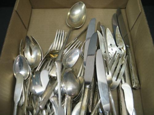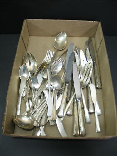 57 PCS. OF GORHAM STERLING FLATWARE. Consists of 8 dinner forks, 8 salad forks, 10 butter knives, 16 tea spoons, 8 spreaders, one ladle, one, one pronged spoon, one serving spoon, one serving fork, one pierced meat fork, one large spreader, and one hors d'oeuvre fork.