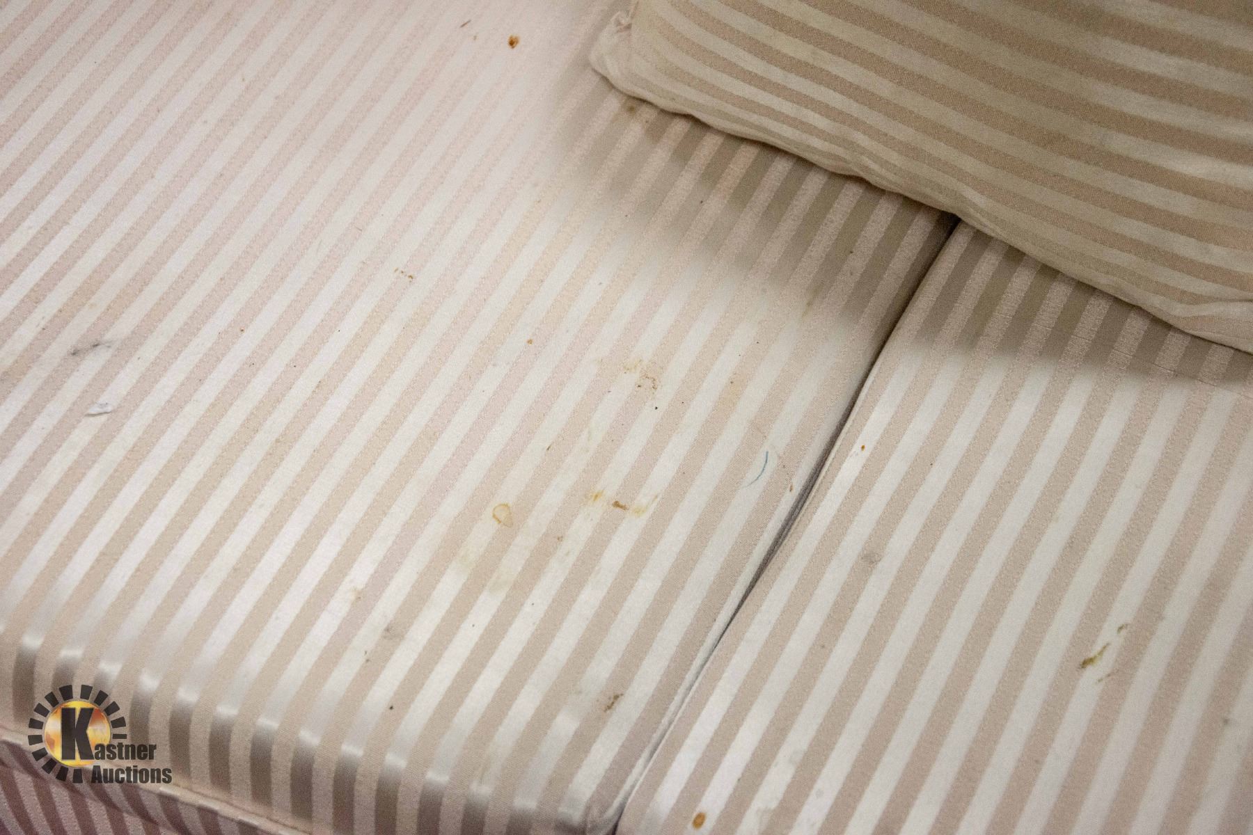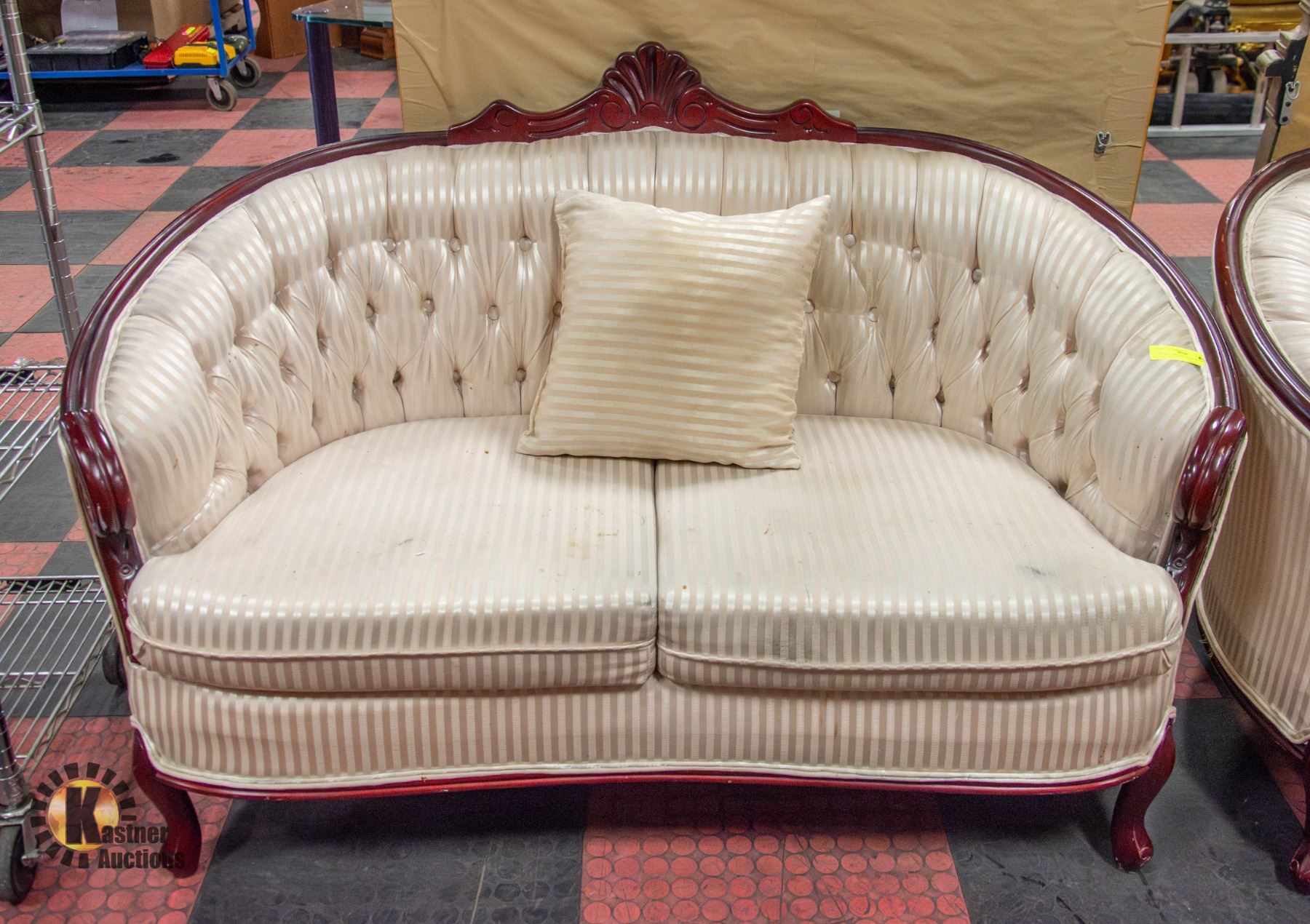 57" X 31" VINTAGE WOOD FRAMED LOVE SEAT