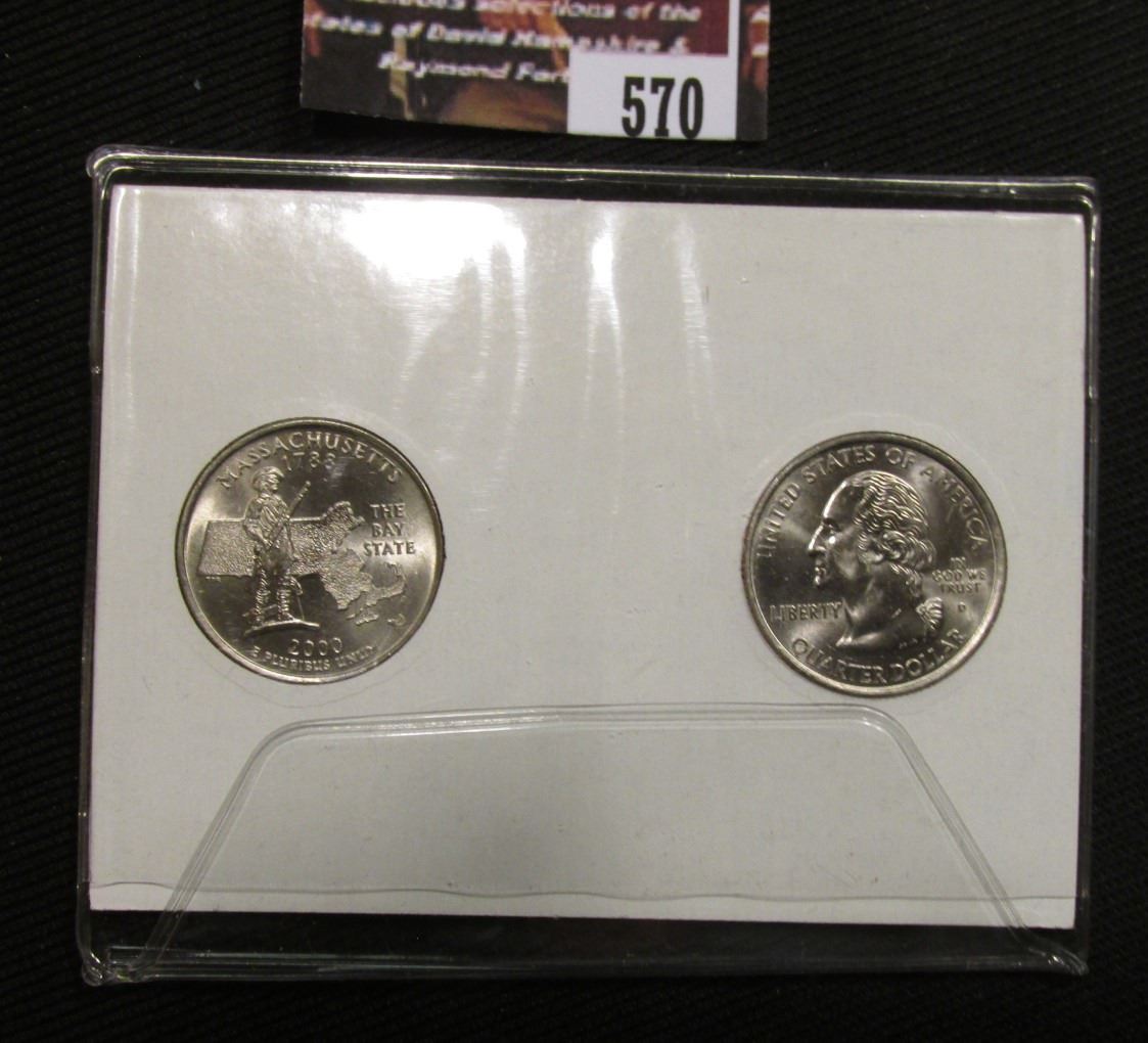 570.2000 P & D Massachusetts Quarter Set in a special case. Gem BU.