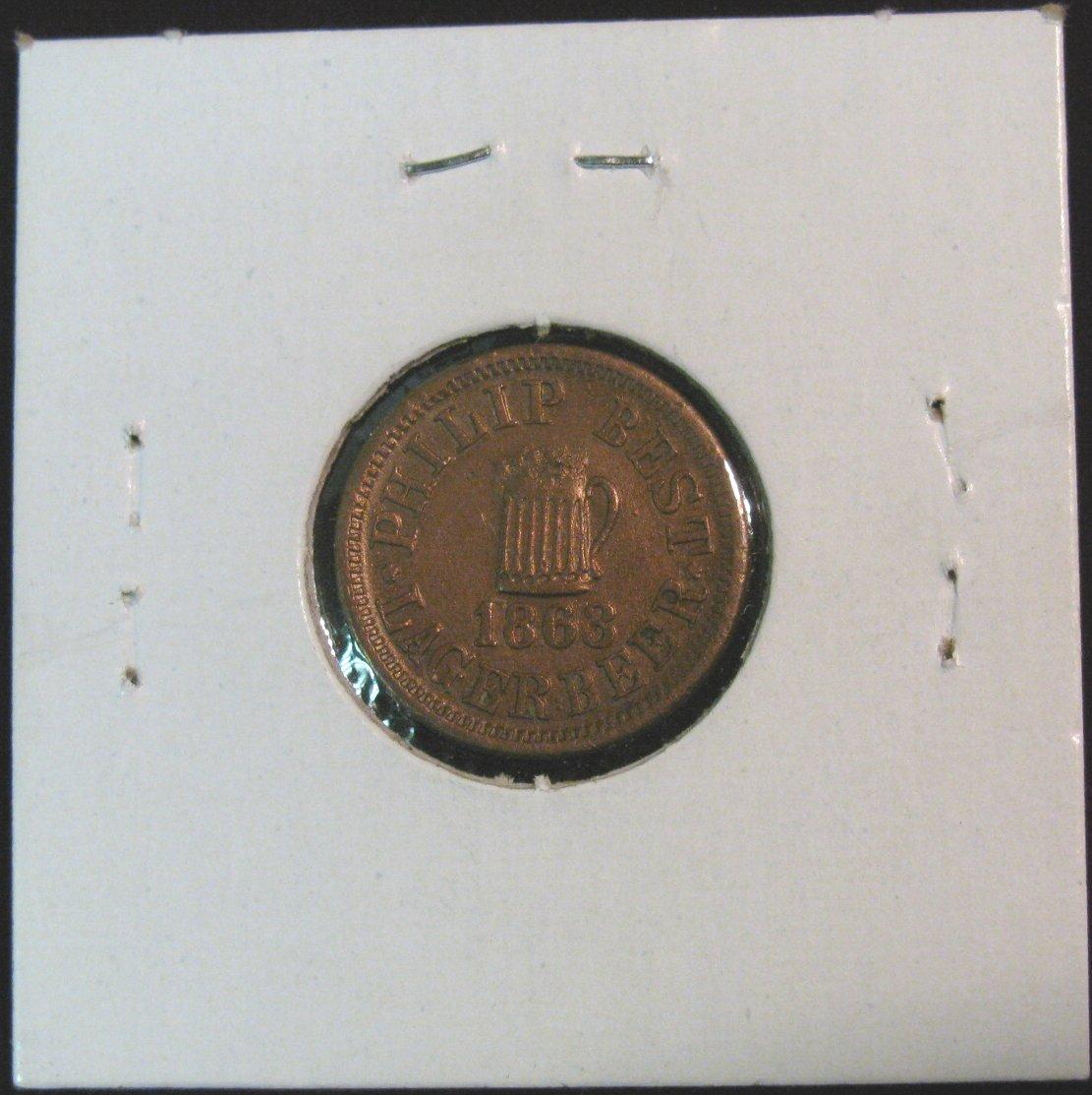 571. 1863 Philip Best Lager Beer Civil War Token. WI 510 C-1a. Empire Brewery, Milwaukee. R2. EF.
