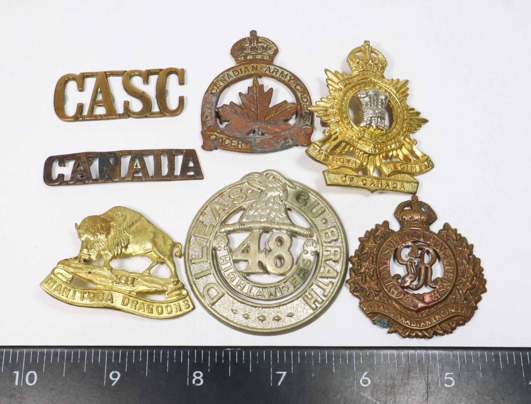 SHOULDER TITLES MISSING REVERSE LUGS FOR REPAIR RESTORATION WORLD WAR ONE WORLD WAR TWO CANADIAN REGIMENTS INCLUDING CASC RCE 48TH HIGHLANDERS THE ROYAL REGIMET OF CANADA XII MANITOBA DRAGOONS