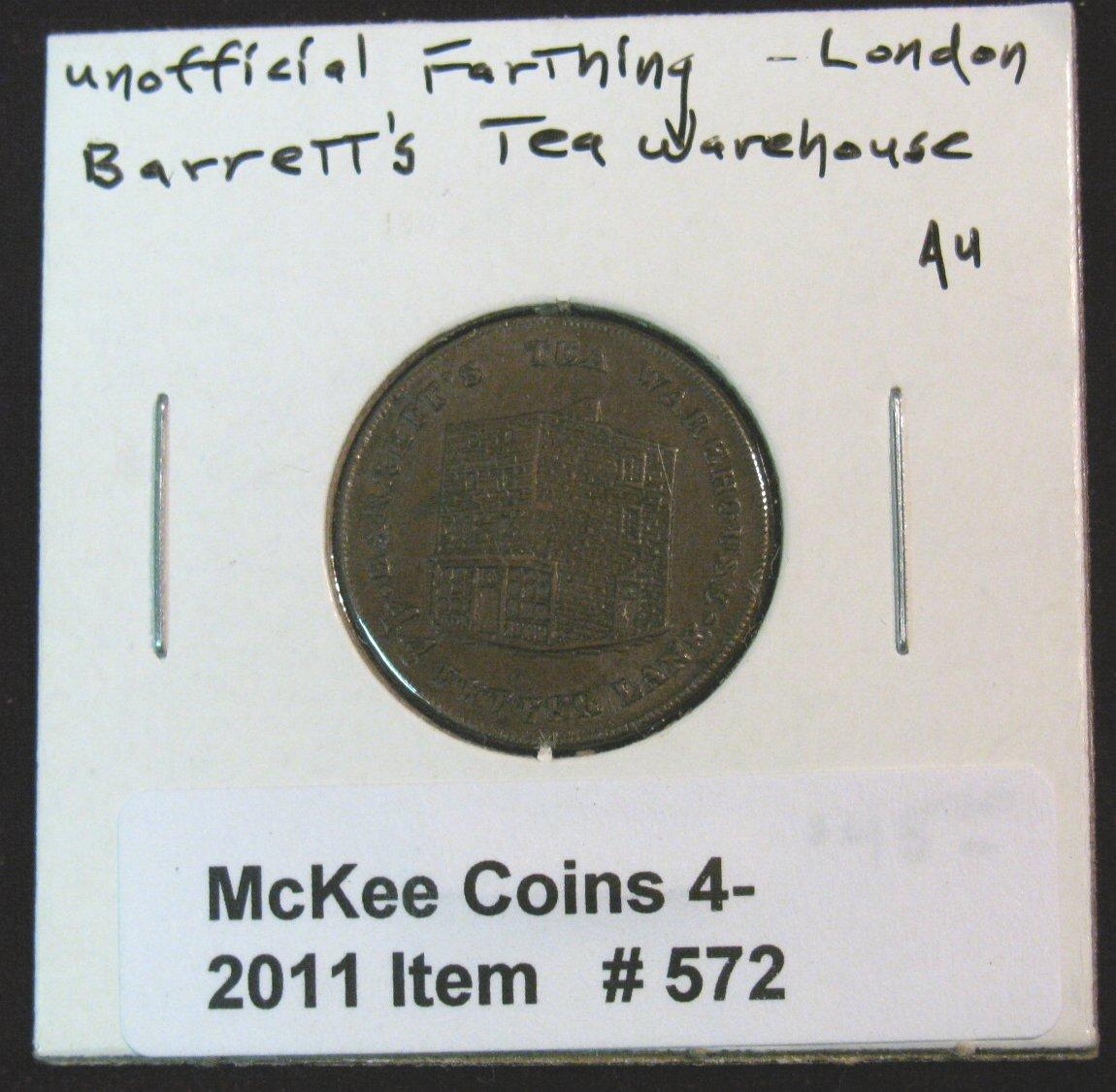 572. Unofficial Farthing. London, Barrett's Tea Warehouse.