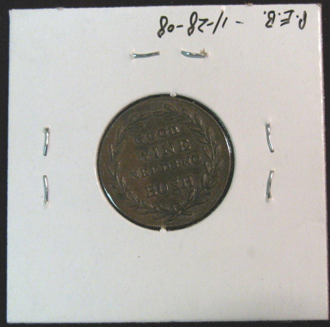 572. Unofficial Farthing. London, Barrett's Tea Warehouse. "Good Wine Needs No Bush". AU.