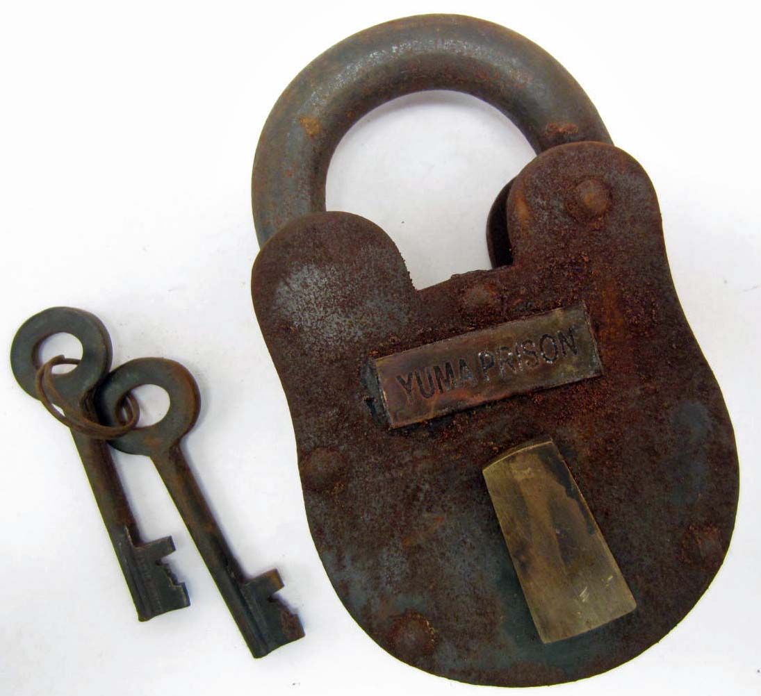 5727 - CAST IRON PADLOCK WITH YUMA PRISON TAG