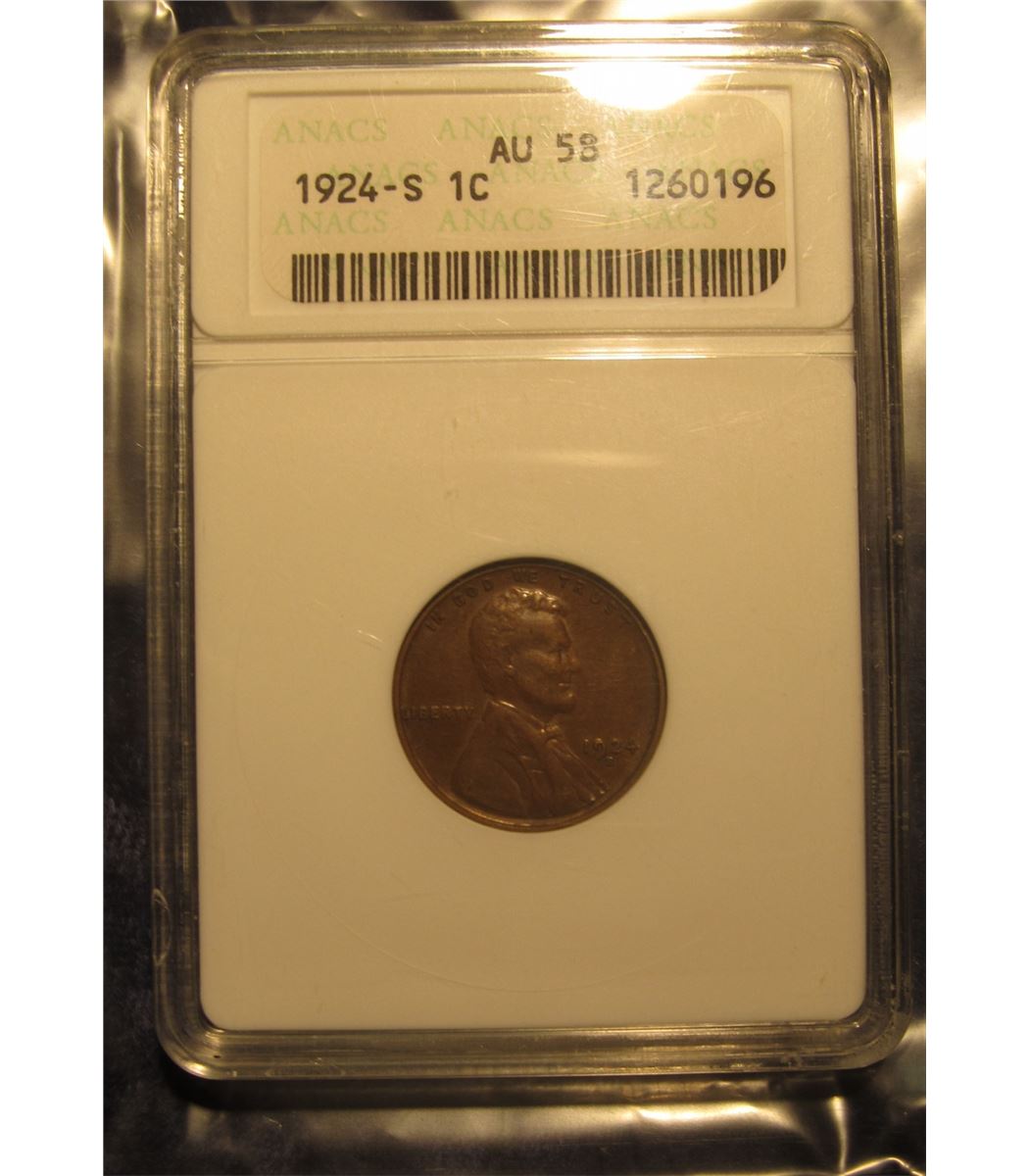 573. 1924 S Lincoln Cent. ANACS slabbed AU 58.