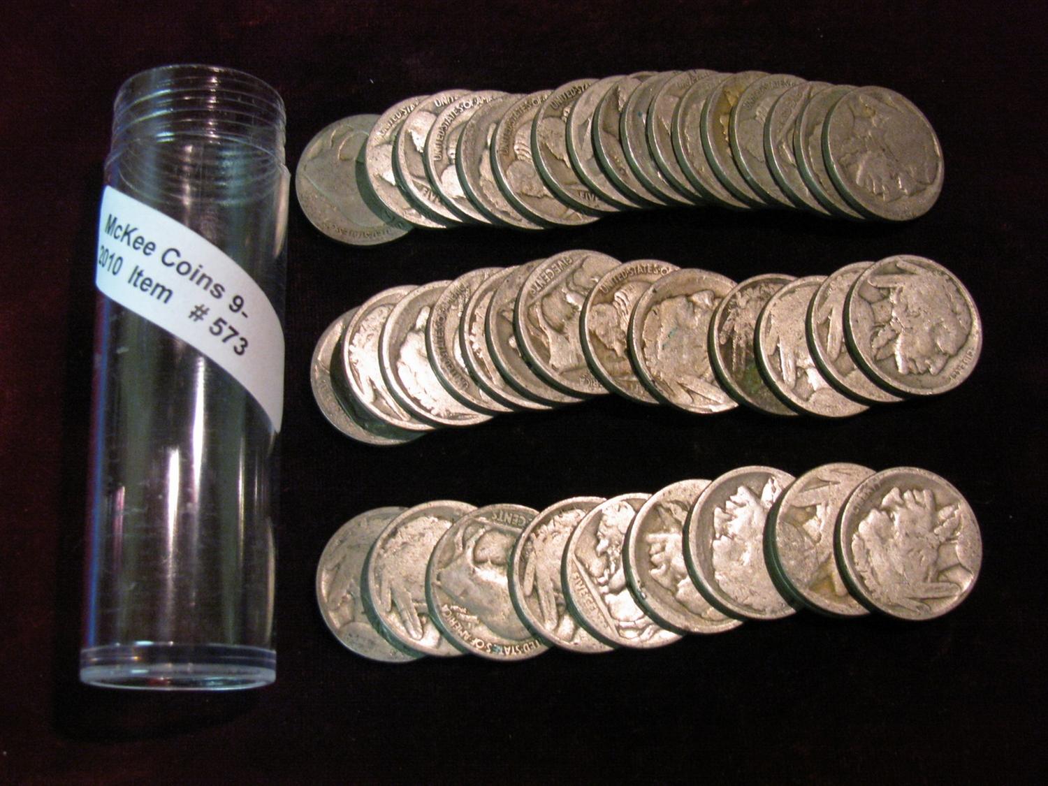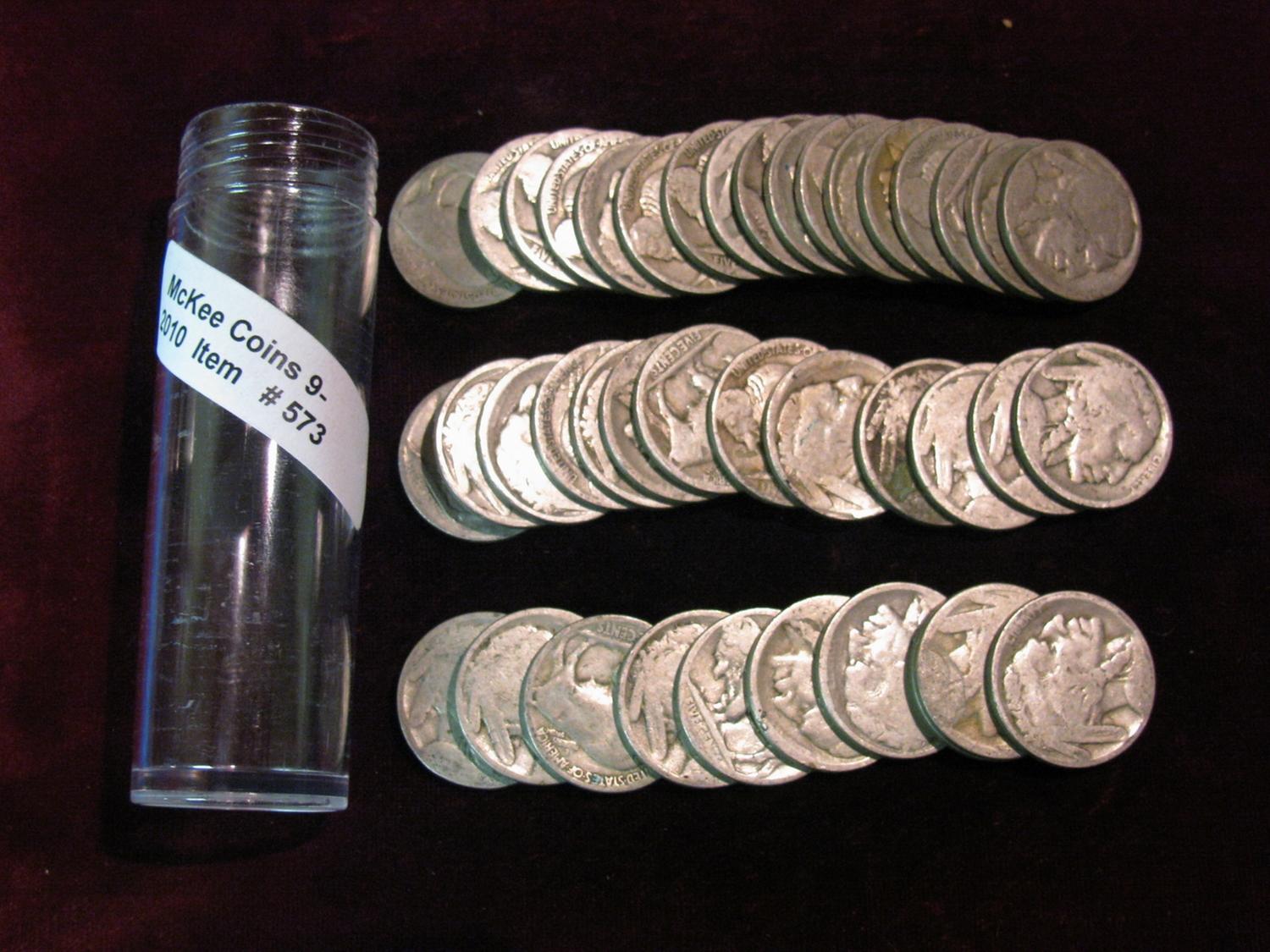 573. Roll of (40) Circulated Old Buffalo Nickels with Indian Heads. In a plastic tube.