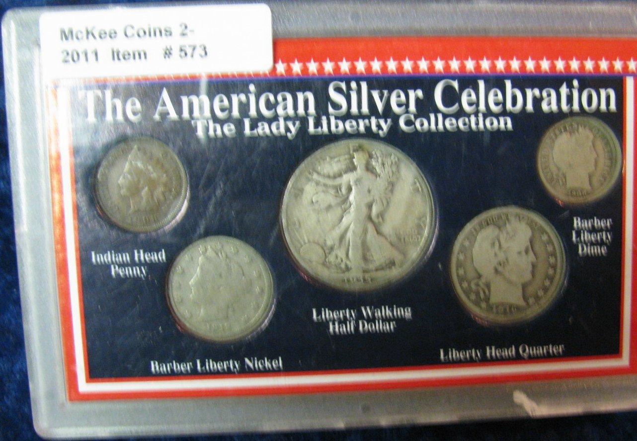 573. The American Legacy Silver Celebration "Lady Liberty Collection" Indian Cent to Walking Liberty Half. (5 pcs.)