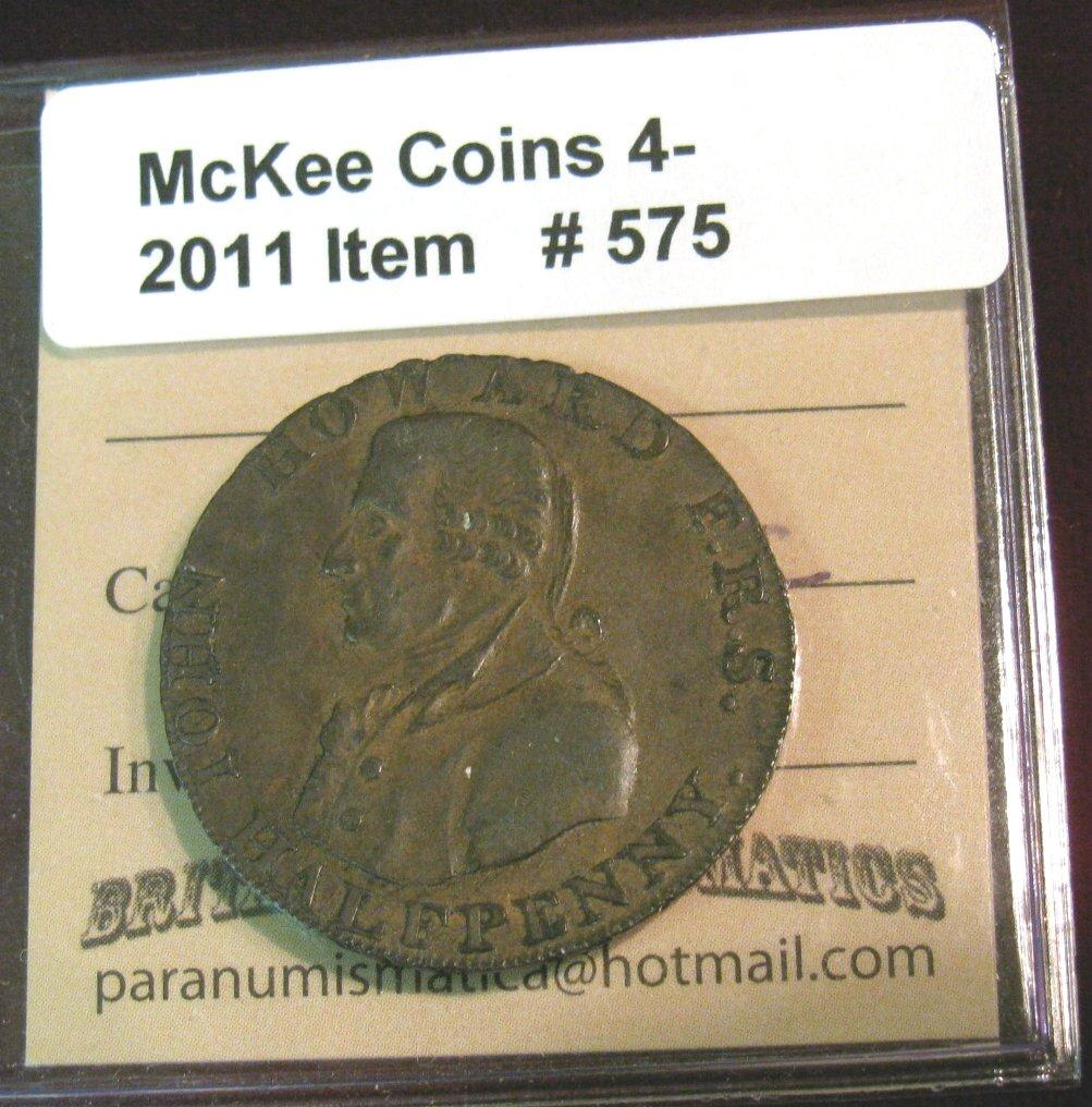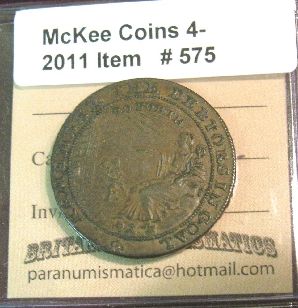 575. Iohn Howard's Half Penny. "Remember the Debtors in Goal Go Forth". EF.