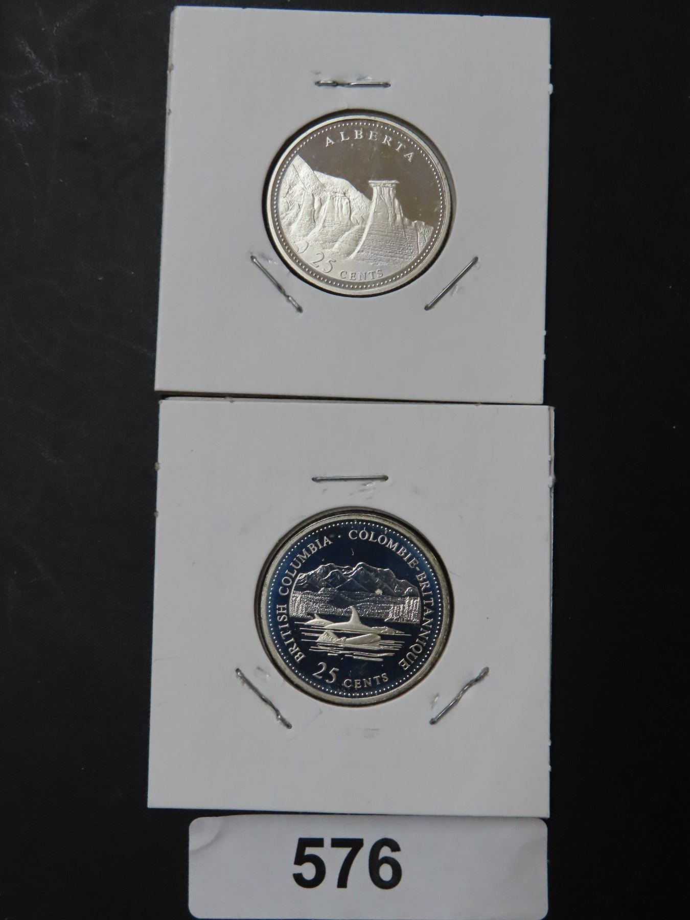 576 2 1992 CDN SILVER PROOF QUARTERS BC, ALBERTA