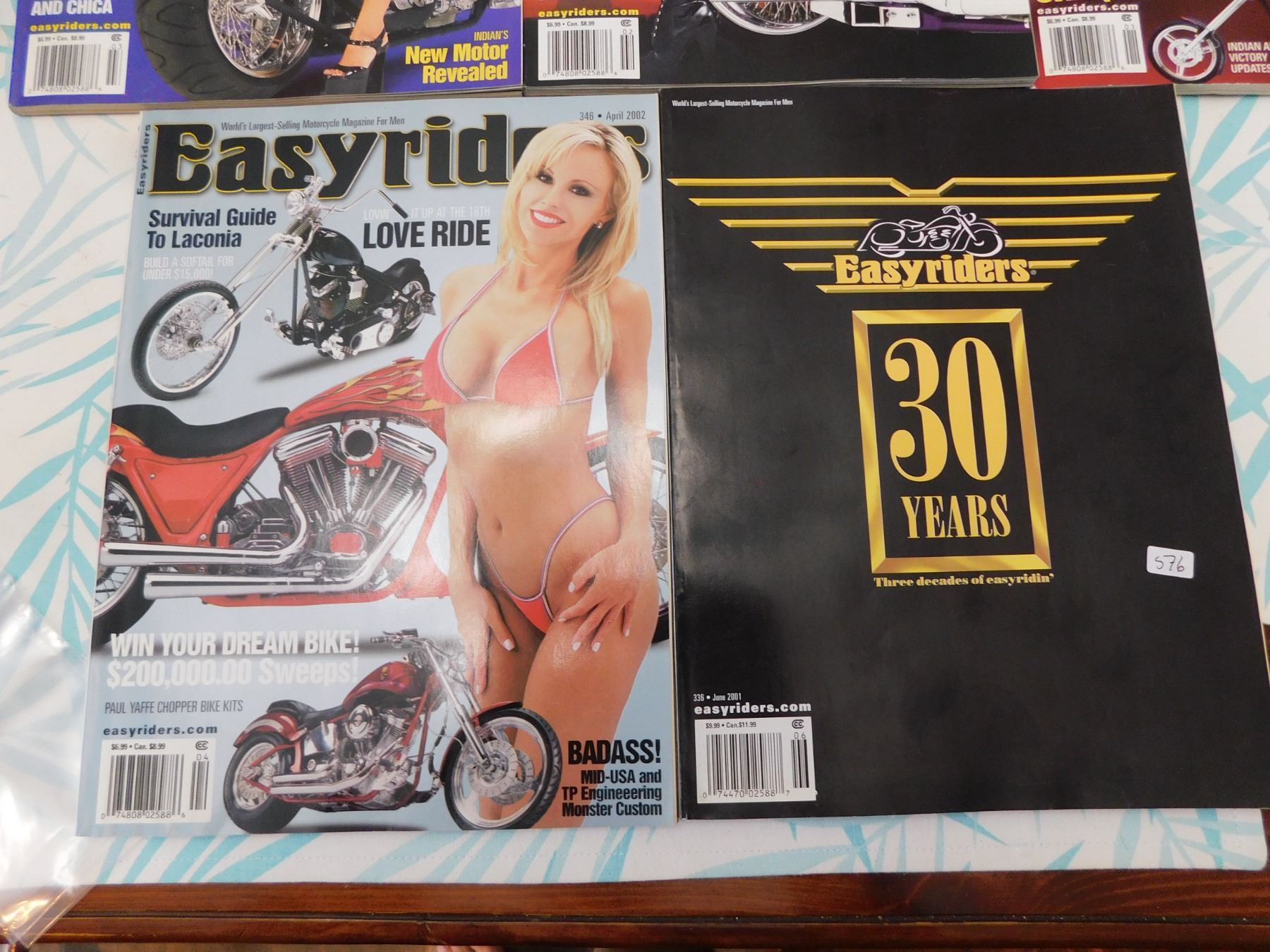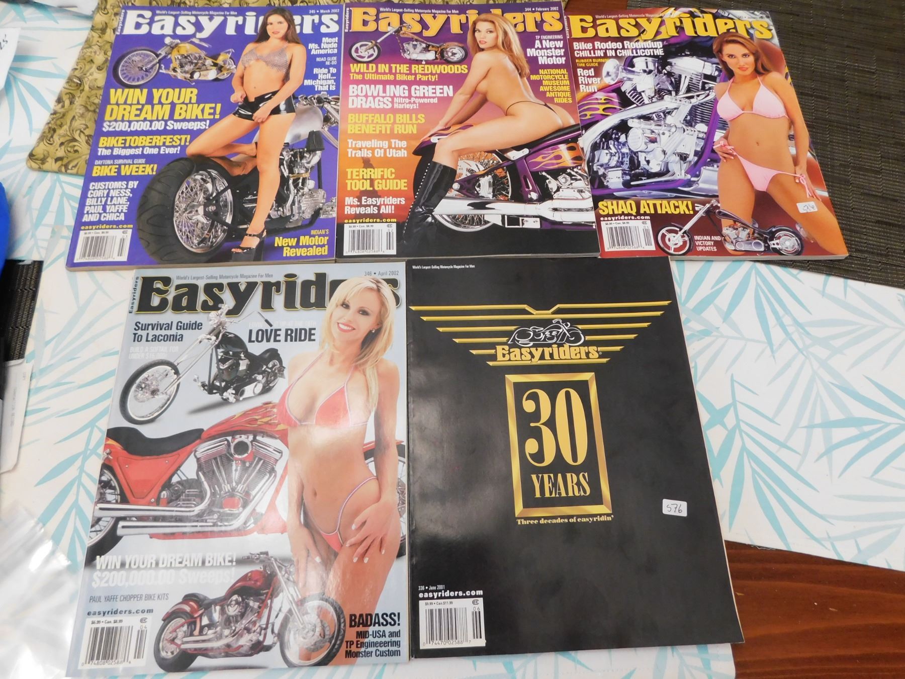 576. JANUARY-MAY 2002, JUNE 2001 EASY RIDER MAGAZINES TOPLESS CENTER FOLDS