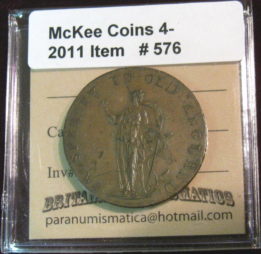 576. "Prosperity to Old England", "Peace and Plenty". Brown AU.