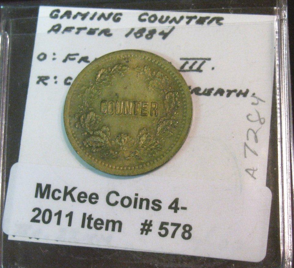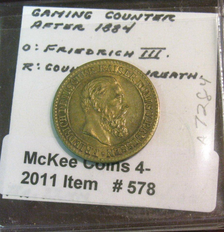 578. Gaming Counter after 1884. Friedrich III. Counter in wreath. Brass. 22mm. EF.