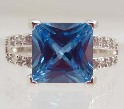 5783 - SILVER BLUE & WHITE TOPAZ RING SIZE 7