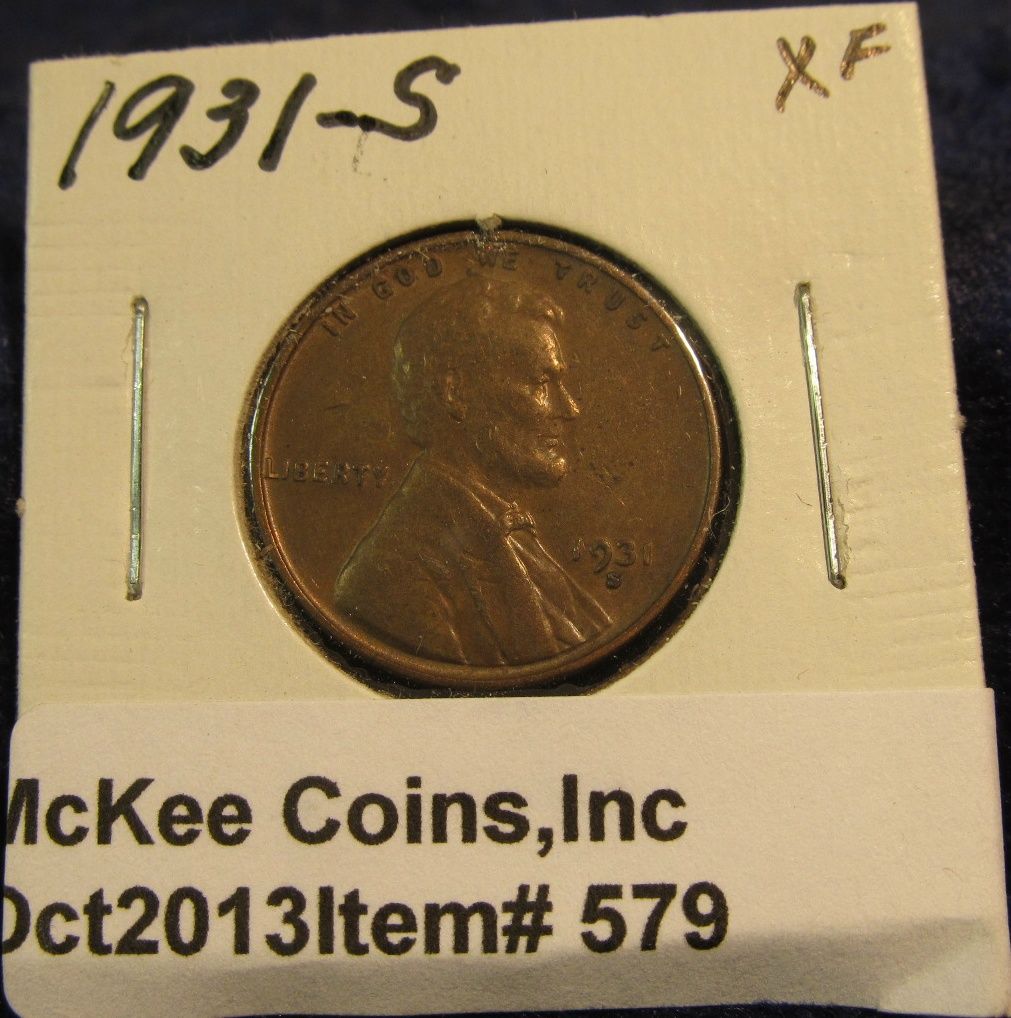 579. 1931 S Lincoln Cent. Key-date. EF 40. Redbook Value $150.00.