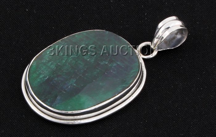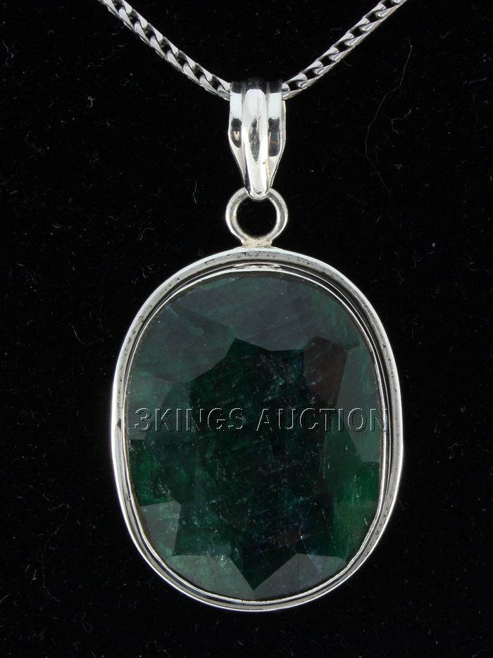 58.00ctw NaturalEmeraldBerylPearStone SilverPendant **|**|** Silver Plated Pear Pendant set with Natural Emerald Gemstone size: 31.44x24.47mm; color: Green; Stone Family: Beryl ; MSRP: $200