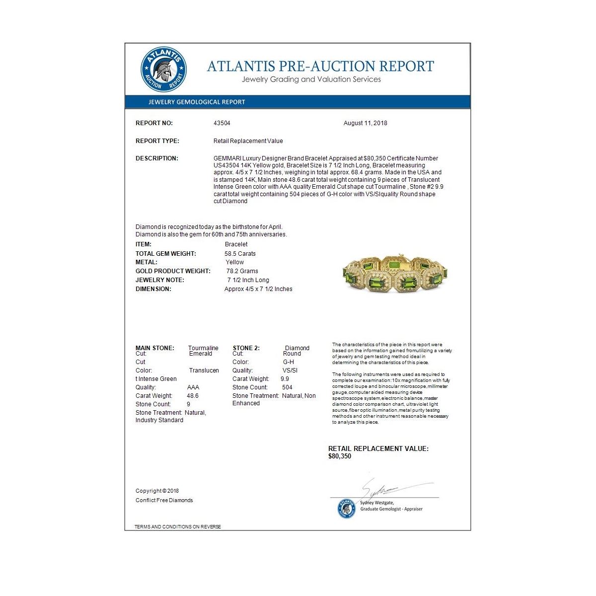 58.5 ctw Tourmaline & Diamond Bracelet 14K Yellow Gold
