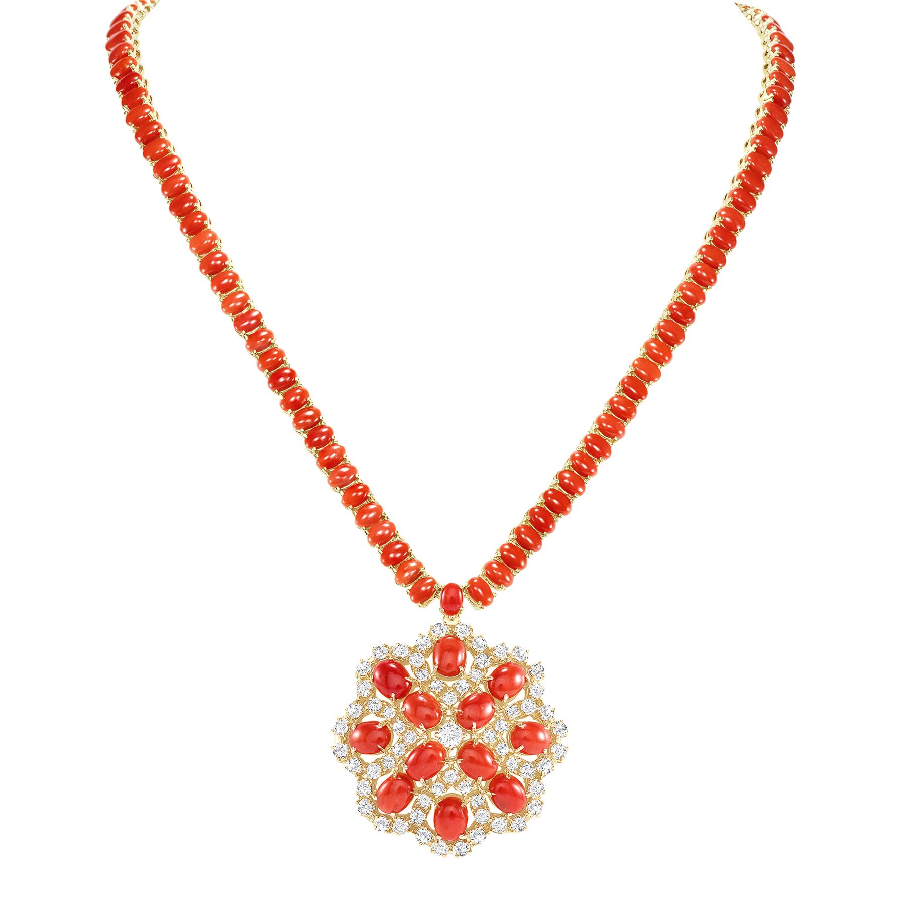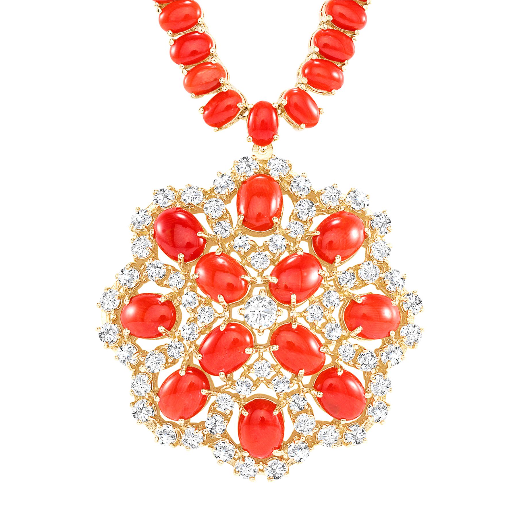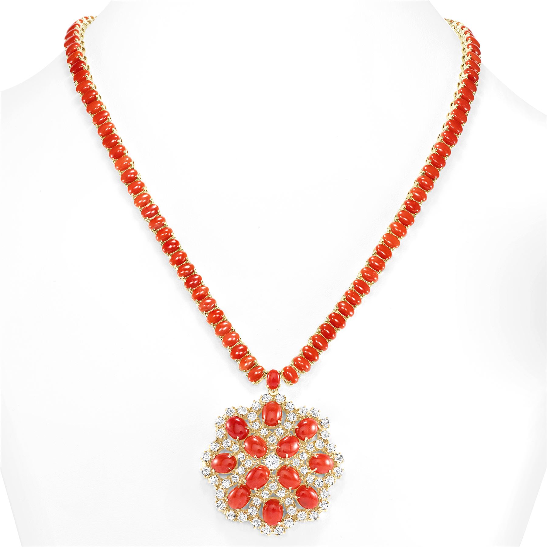 14k Yellow Gold 52.4gm / Coral 58.51ct / Diamond 5.52ct / #Lkz67