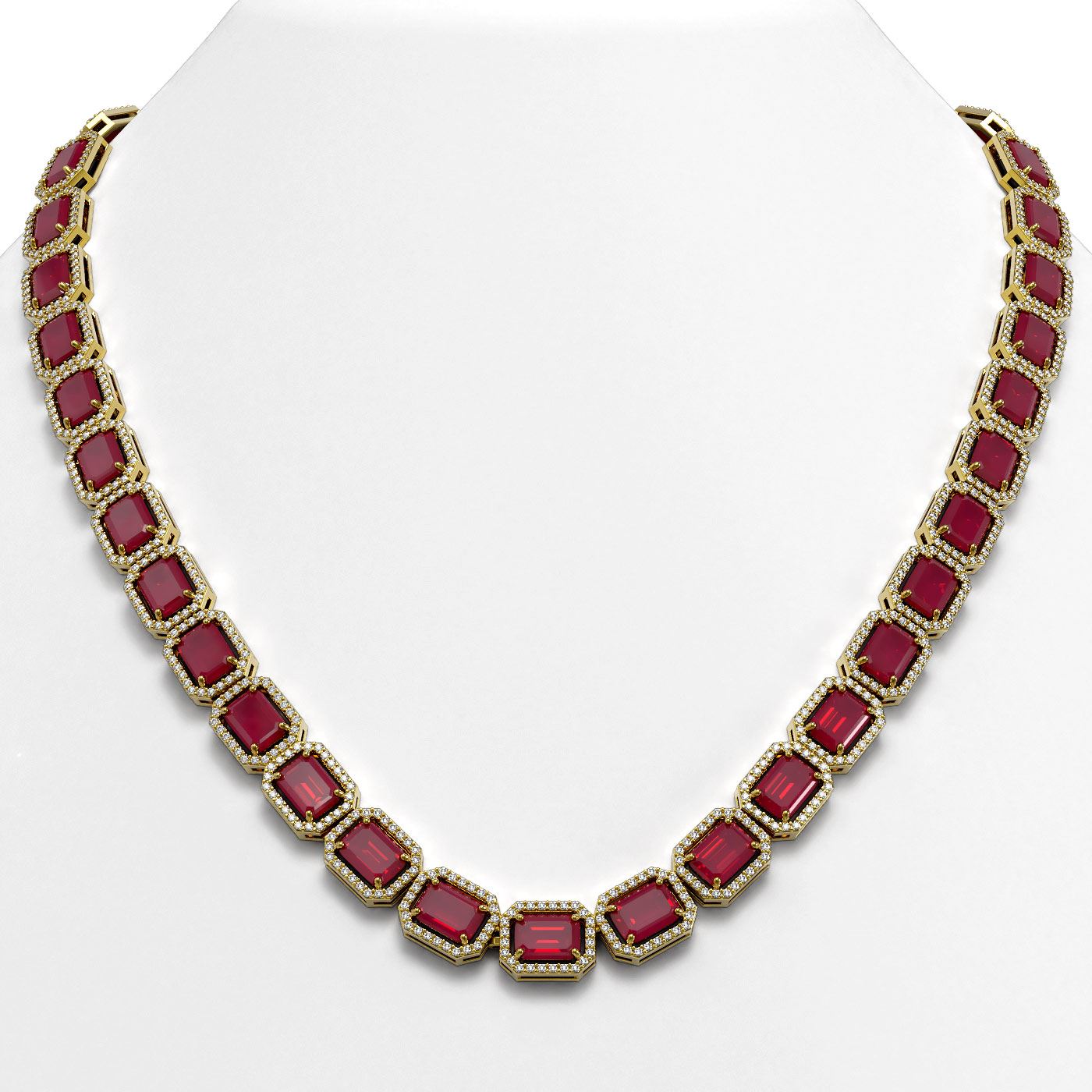 SKU: 41335 ---- 58.59 ctw Ruby & Diamond Micro Pave Halo Necklace 10k Yellow Gold