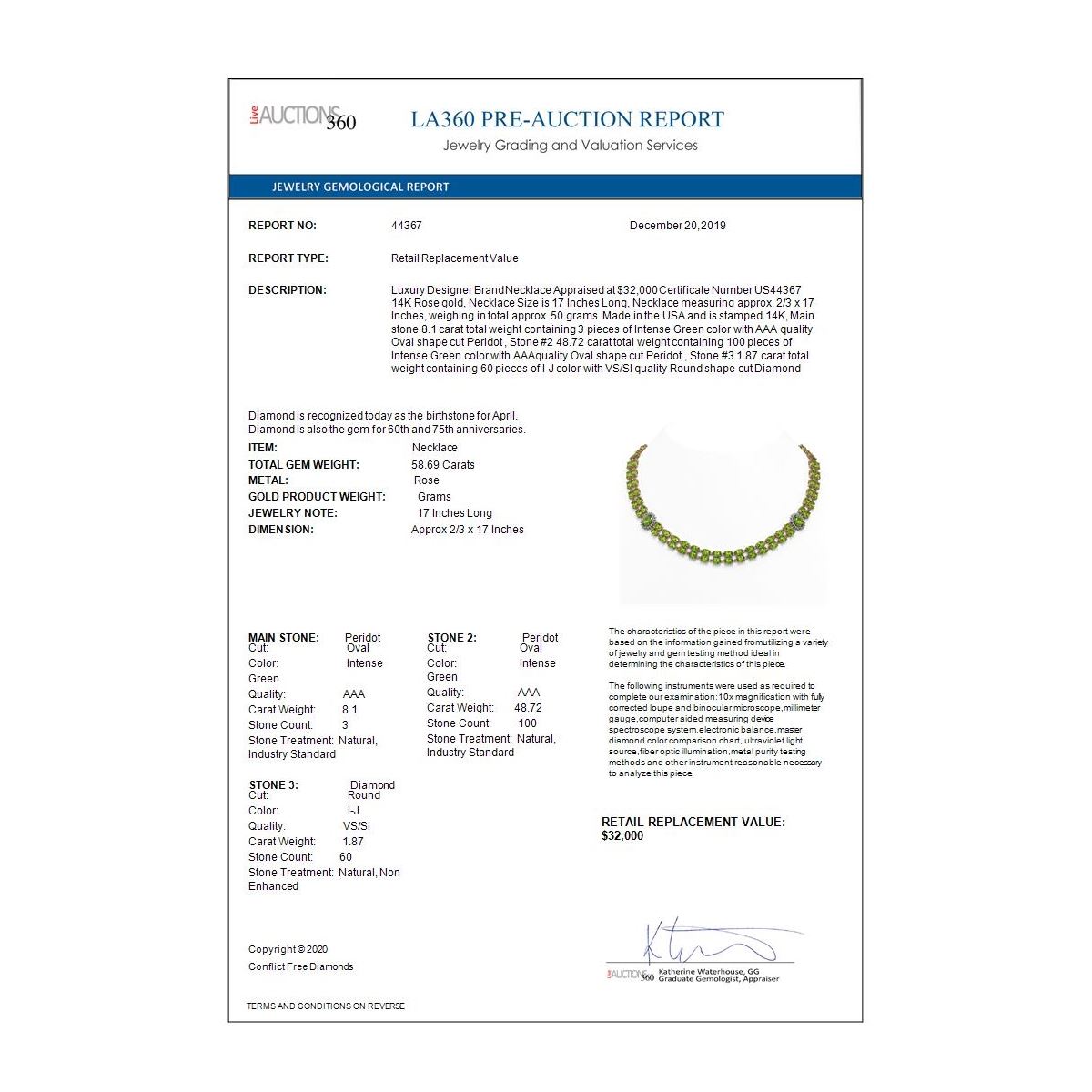 REF-581R8K - SKU: 44367 ---- 58.69 ctw Peridot & Diamond Necklace 14K Rose Gold