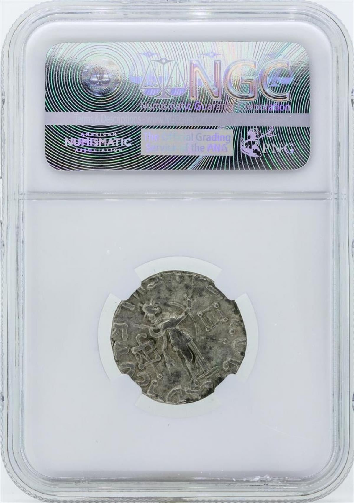 One 58 BC Indo Scythians Azes I/II AR Tetradrachm Coin NGC Ch F. NGC Certified.