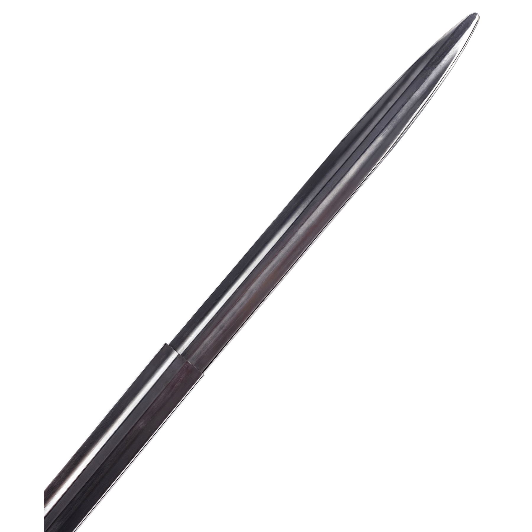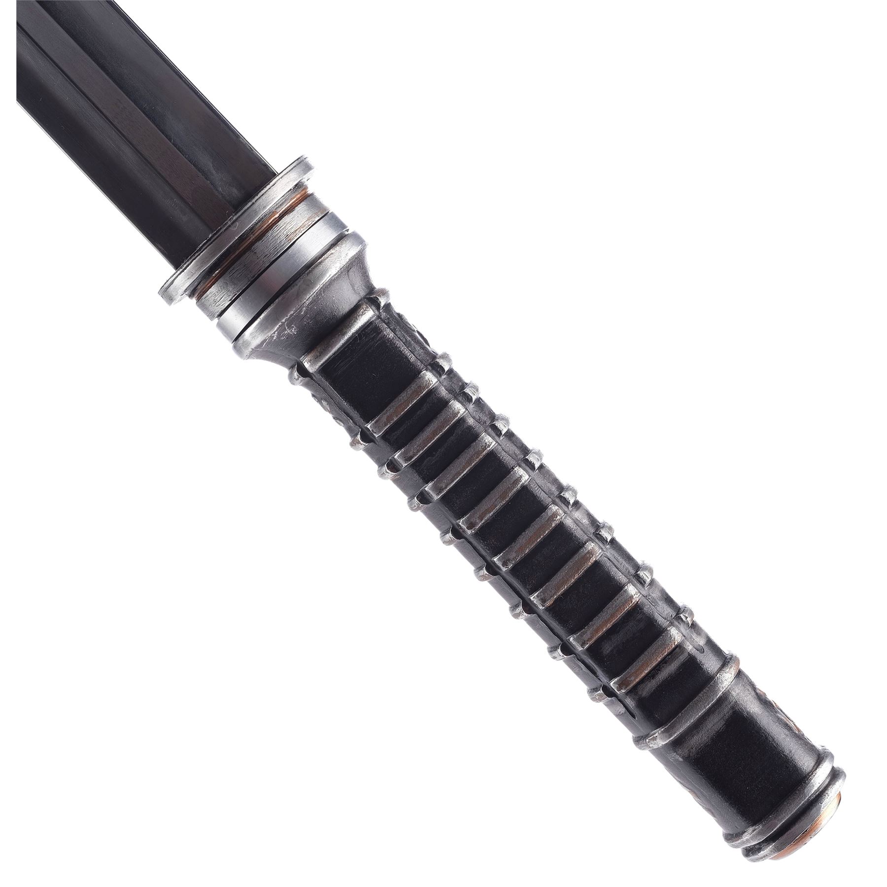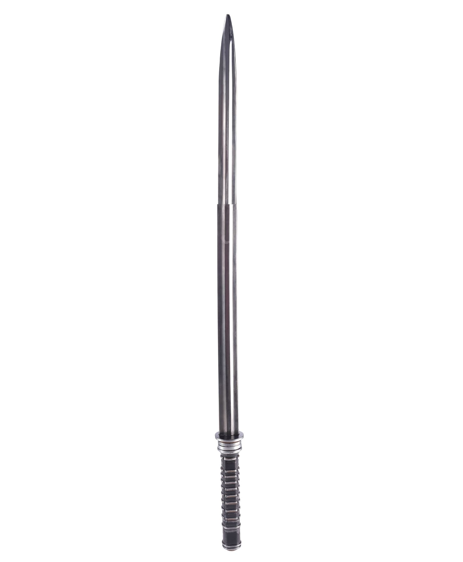 This aluminum version of the Daywalker's sword was created for SFX inserts of Blade stabbing other vampires. It features a polished blade with a retractable tip and a distinctive blood groove as well as a ribbed, less detailed version of the sword's signature grip painted black to appear wrapped with leather. The retractable tip exhibits scuffing at its point and the paint on the grip exhibits flaking from production use and handling. Dimensions: 36" x 2" x 2" (91.5 cm x 5 cm x 5 cm)