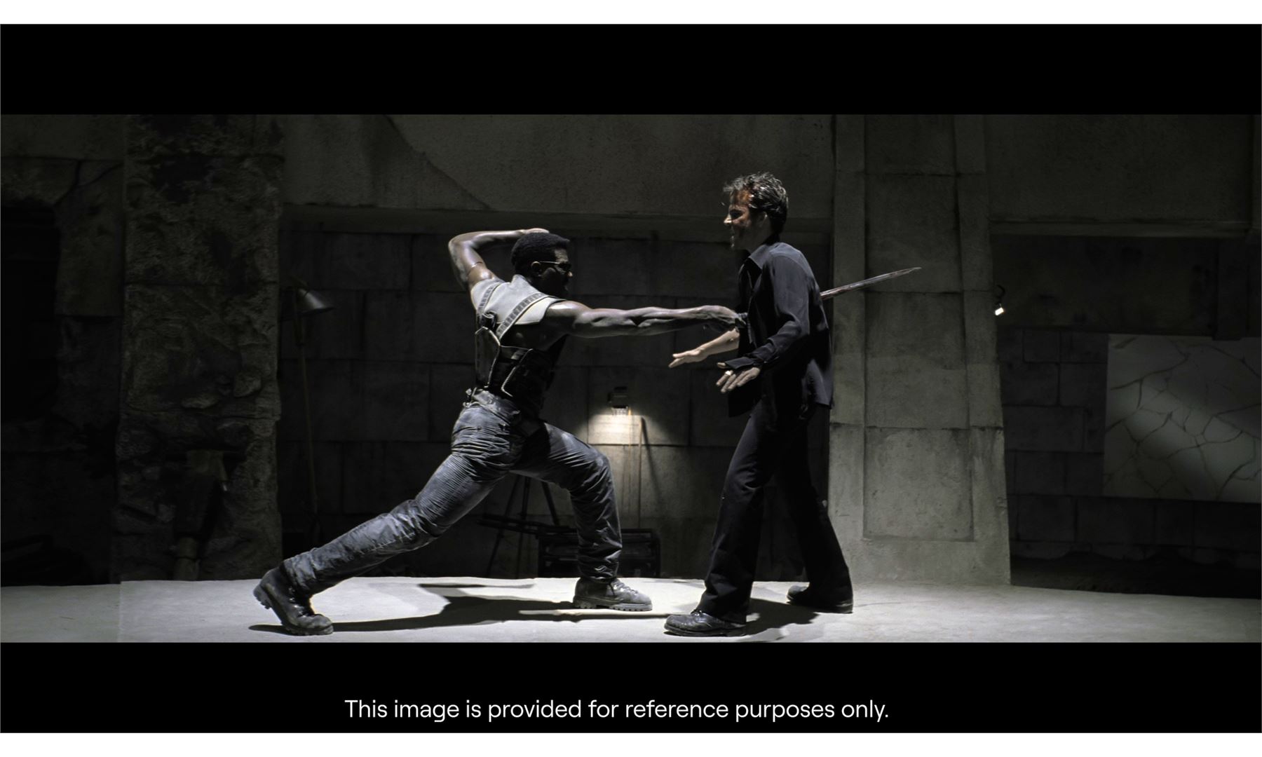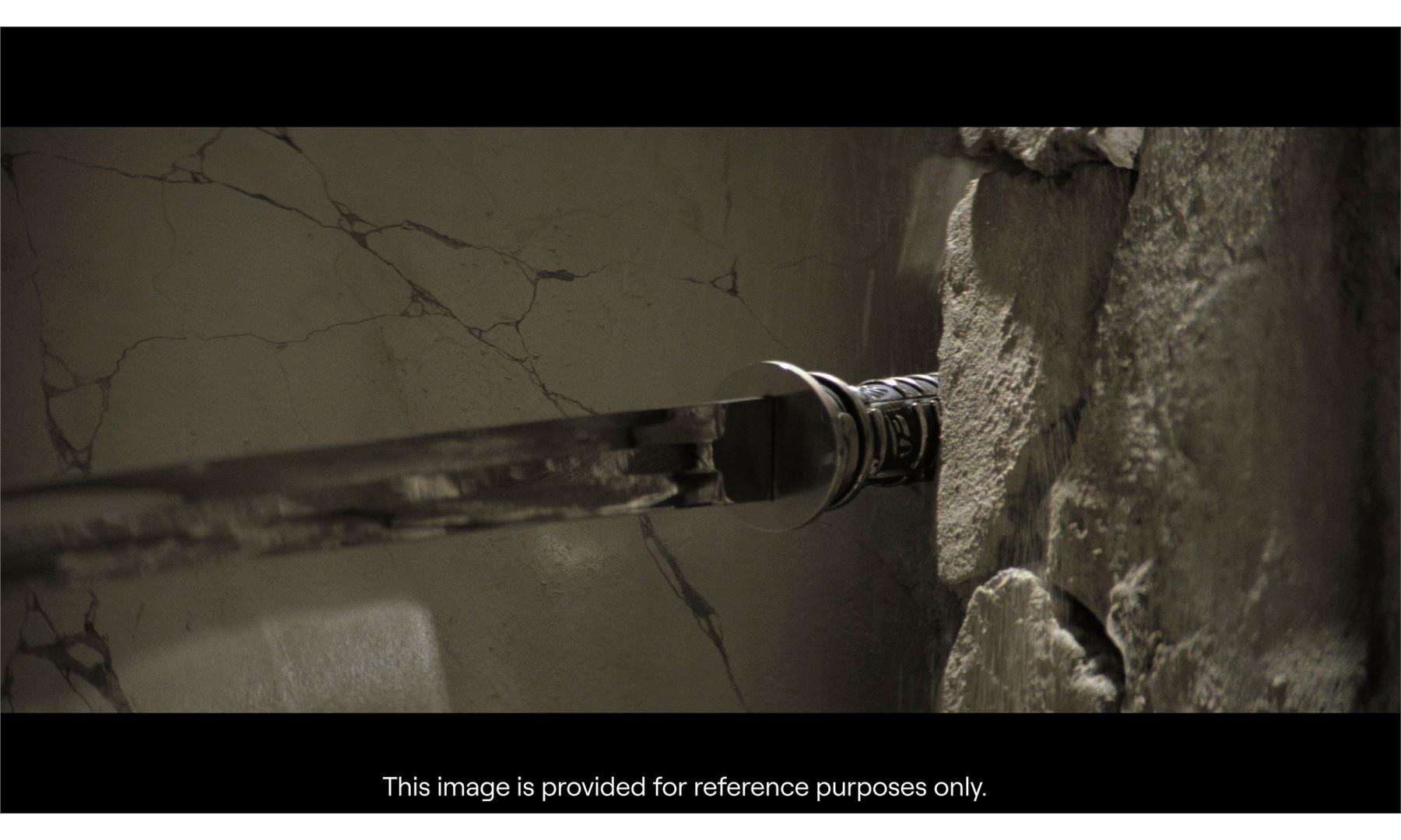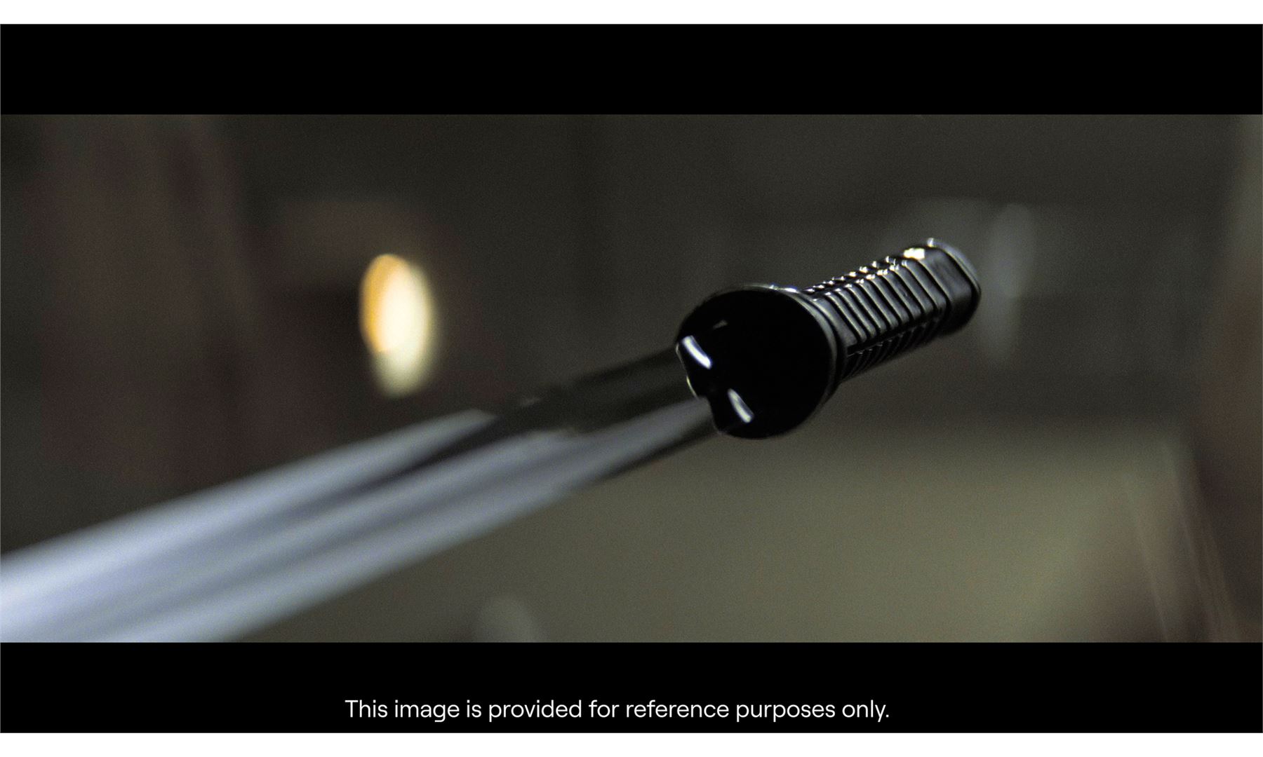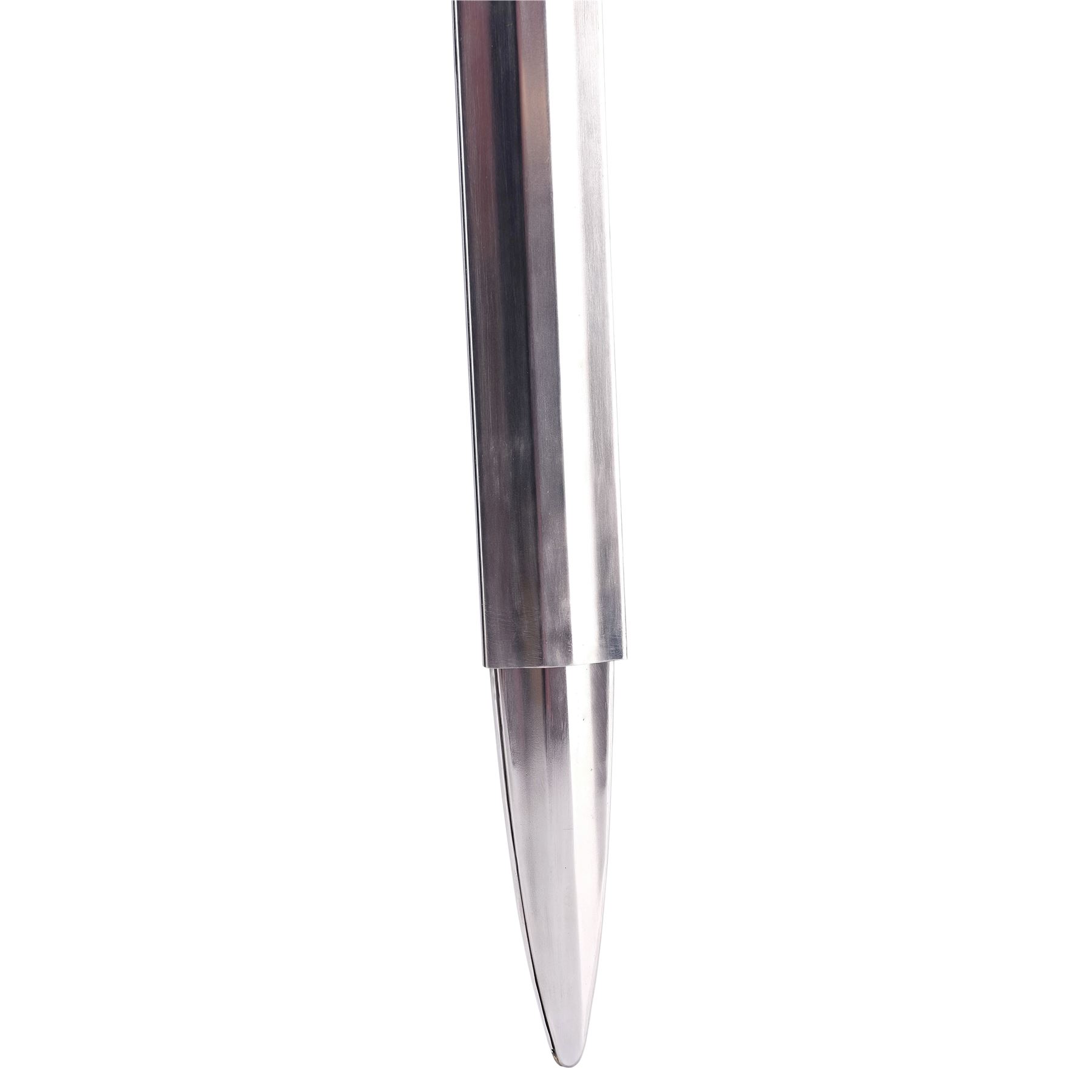 This aluminum version of the Daywalker's sword was created for SFX inserts of Blade stabbing other vampires. It features a polished blade with a retractable tip and a distinctive blood groove as well as a ribbed, less detailed version of the sword's signature grip painted black to appear wrapped with leather. The retractable tip exhibits scuffing at its point and the paint on the grip exhibits flaking from production use and handling. Dimensions: 36" x 2" x 2" (91.5 cm x 5 cm x 5 cm)