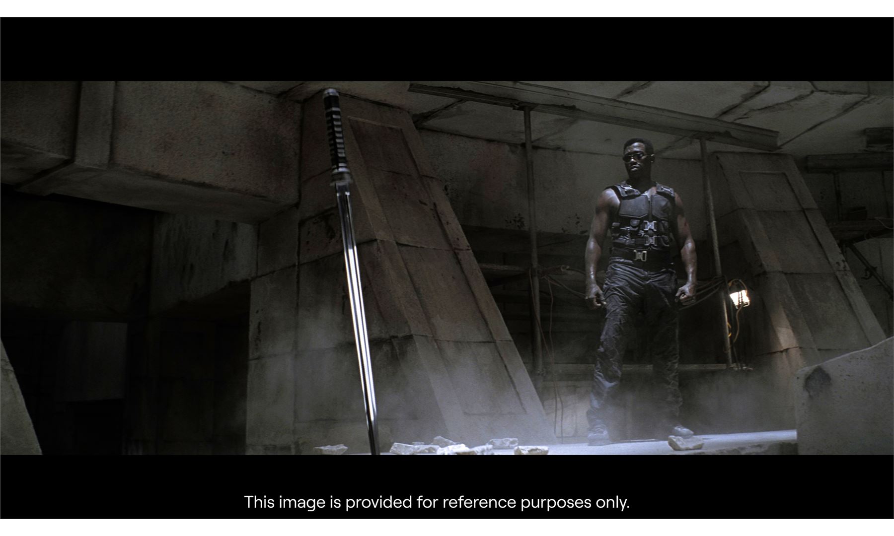 Among the Daywalker's most distinctive accessories and an inheritance from his mentor, Abraham Whistler (Kris Kristofferson), Blade's sword was designed by Hollywood swordmaker Tony Swatton. His sword appeared in multiple promotional images for the film, and remained his signature weapon throughout the next two films.